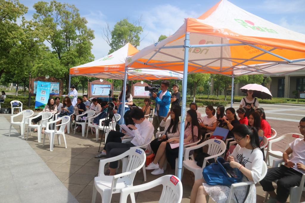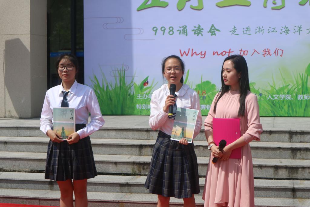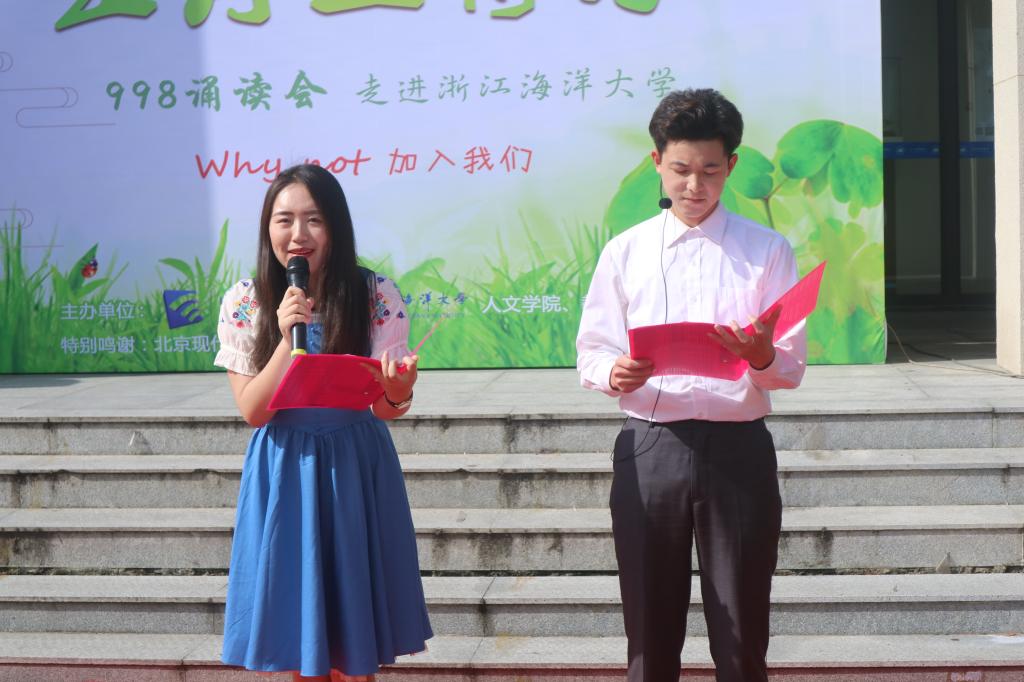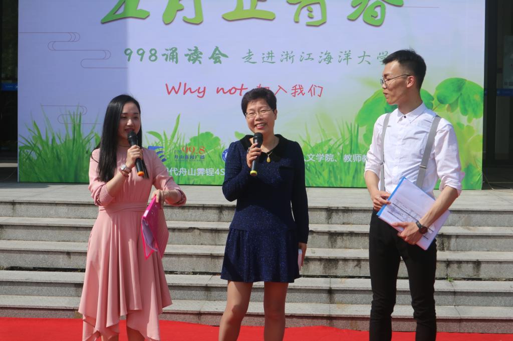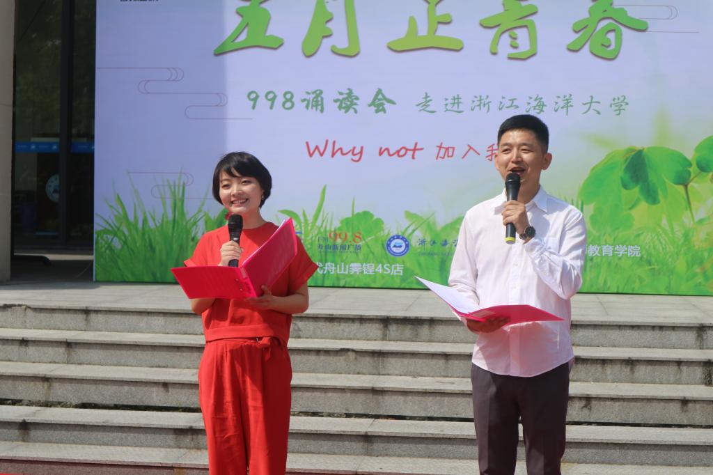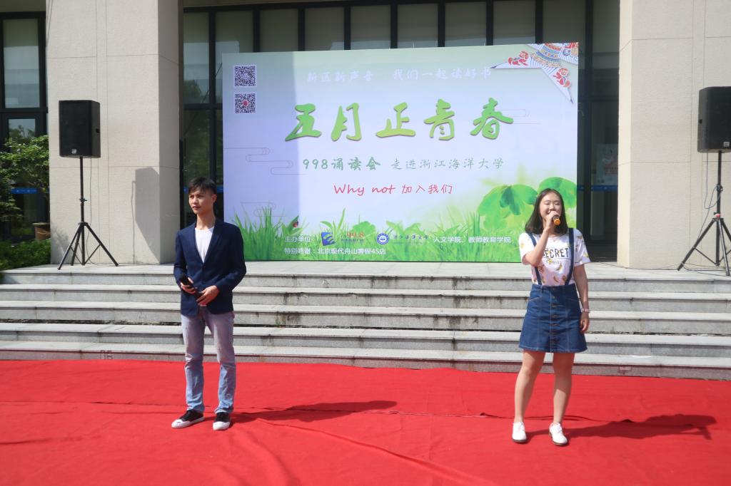 5月13日下午2点,永利集团官网人文学院、教育学院携手舟山新闻广播在杨存国1号报告厅门口举办了998诵读会。人文学院、教师教育学院团委副书记傅林静出席活动。
