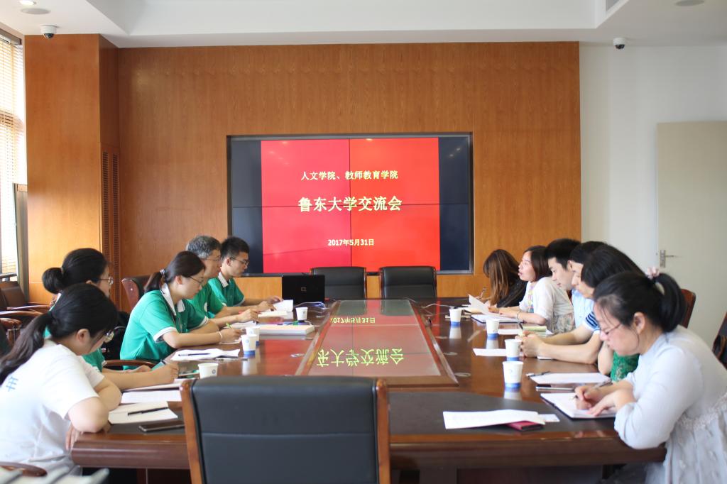 5月31日上午8:30,鲁东大学环渤海发展研究院副院长刘良忠一行5人来我院交流。学院党委副书记张祎星、学工办主任曹虹、团委副书记傅林静,艺术教研中心副主任孙靓、于志新老师进行了热情接待,并在文理楼418会议室进行了座谈与交流。