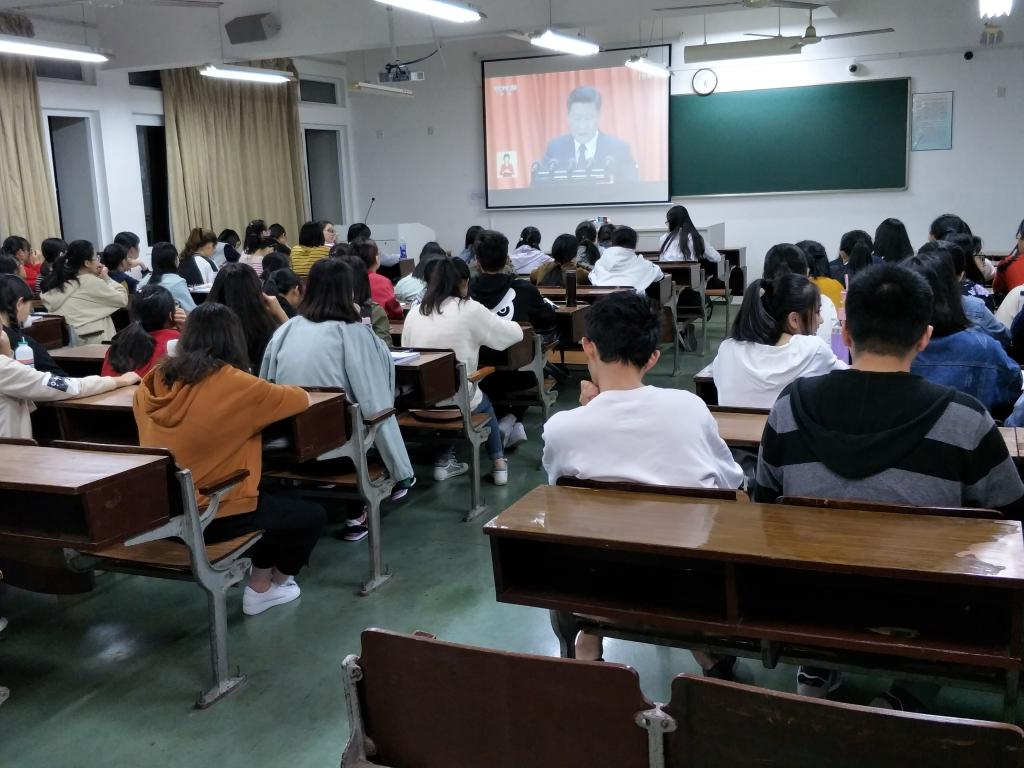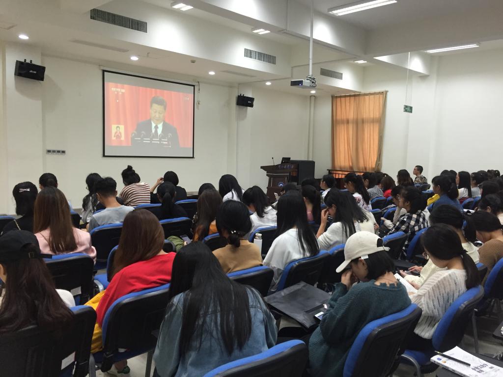 党的十九大是我们党在全面建成小康社会决胜阶段、中国特色社会主义关键时期召开的一次非常重要的大会,是全党全军全国各族人民政治生活中的大事。在观看直播现场,人文、教育学院师生边看边做好记录,不时以热烈的掌声回应习近平总书记的精彩报告。会后,学院开展了多种形式的讨论,在微信群转发了总书记讲话全文等多种学习资料。要求全院师生要学习好、领会好党的十九大精神,进一步提高认识,统一思想,掀起认真学习党的十九大精神的热潮。