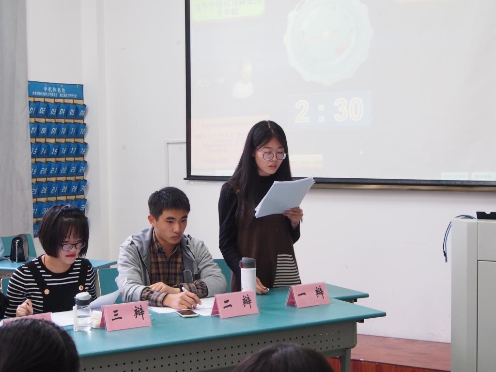 10月22日中午十二点,人文学院、教师教育学院新生杯辩论赛第二轮于长峙校区公共教学楼107举行。辩论赛由朱佳怡、翟绍章、金才唐轮流主持,文教争鸣辩论队成员及新生辩论队选手参加了此次辩论赛。