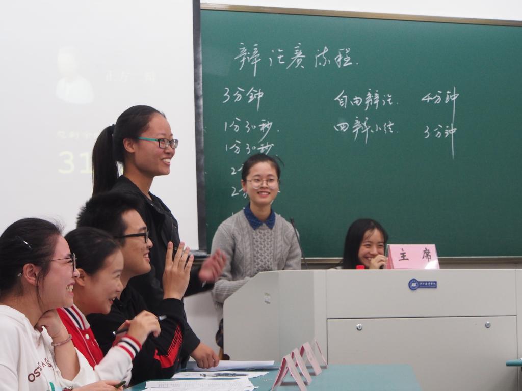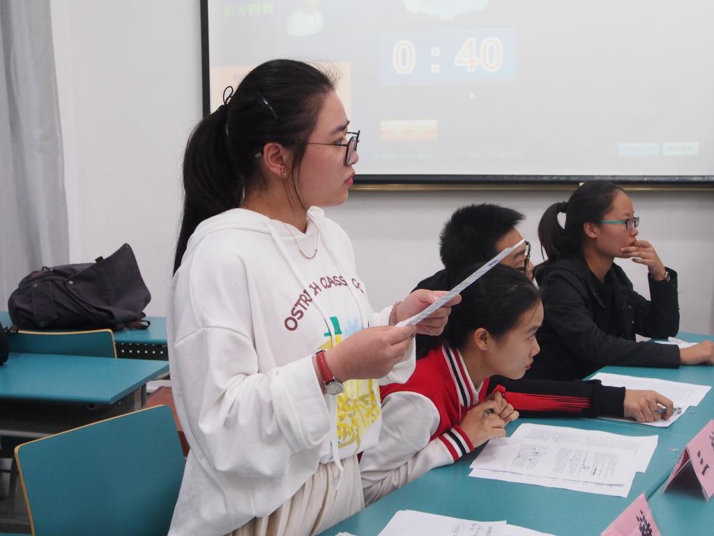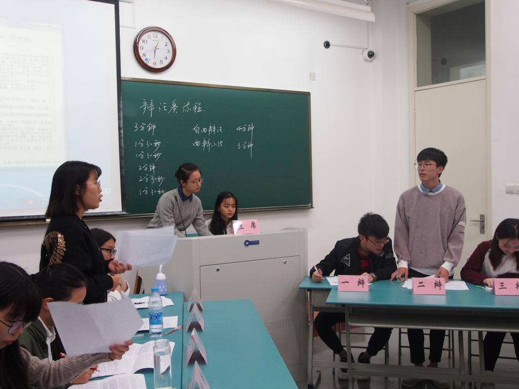 10月29日晚五点三十分,人文学院、教师教育学院新生杯辩论赛半决赛于长峙校区公共教学楼425举行。活动由朱佳怡主持,文教争鸣辩论队成员方倩颖、杨舒怡、曾少奇、周钰担任评委。