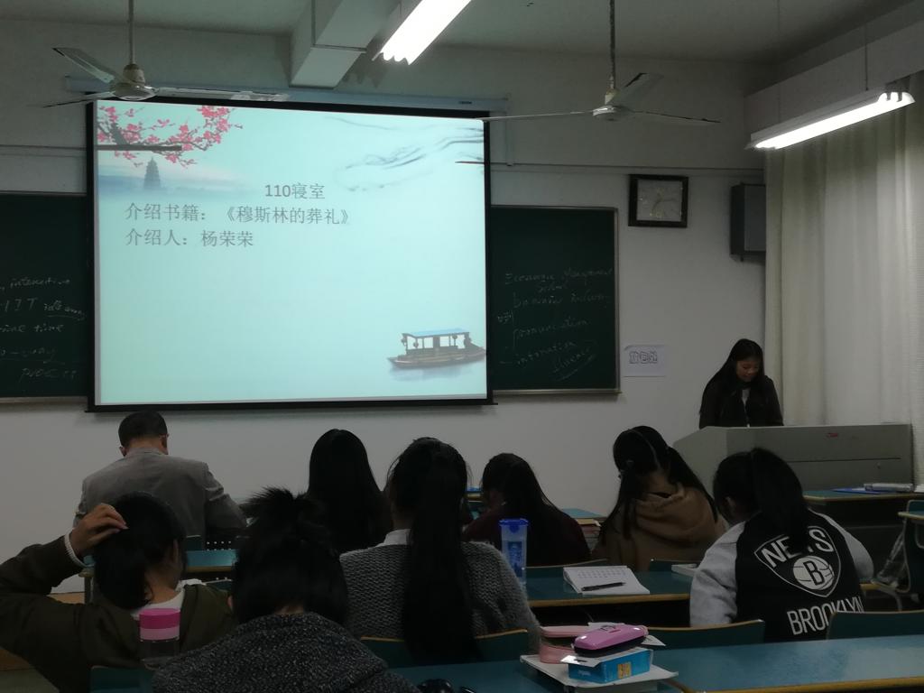 10月29日晚7时,A17中文班在教学楼552开展了主题为“读书修身,尽享阅读”的读书分享会。班主任杨宁老师和全班同学参加了此次活动。