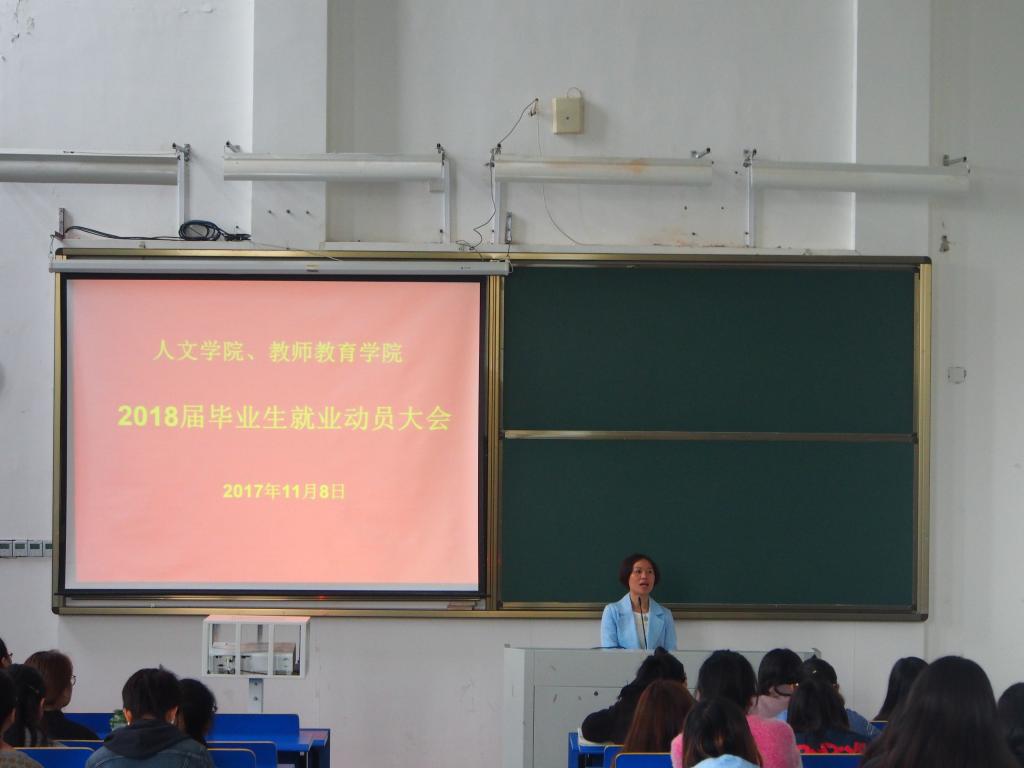 11月8日中午十二点半,人文学院、教师教育学院2018届毕业生就业动员大会于公共教学楼 117举行。人文学院、教师教育学院党委副书记张祎星出席本次大会,学院2018届毕业生参加此次会议。会议由学工办主任曹虹主持。