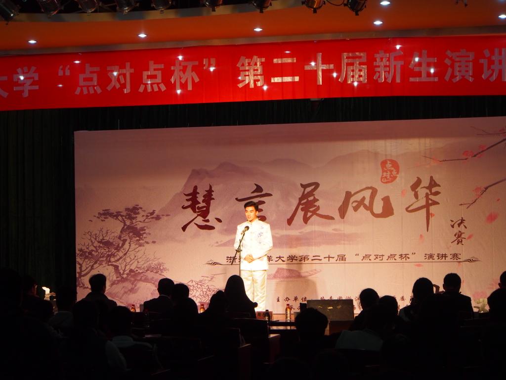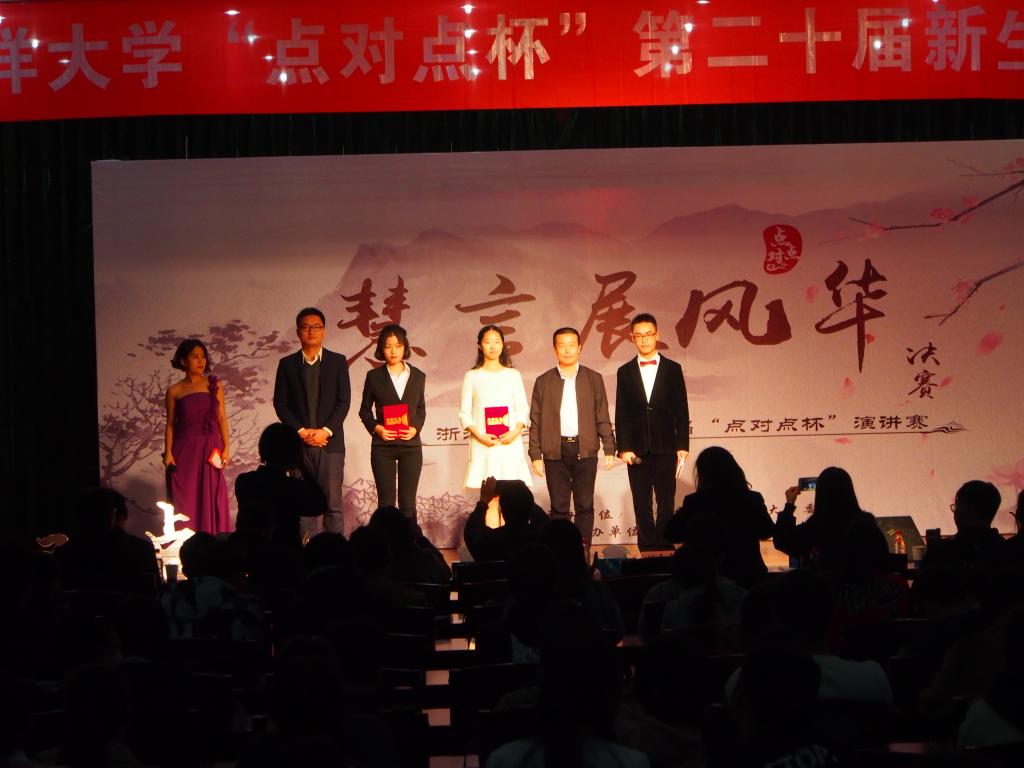 11月18日晚六点半,永利集团官网“点对点杯”第二十届暨“慧言展风华”新生演讲赛决赛在定海校区活动中心二楼多功能厅顺利举行。永利集团官网语言文字委员会徐波教授,共青团定海区委副书记陈争光老师,学生处副处长、东海科学技术学院副院长姚会彦老师,校团委副书记陶芳芝老师,东海科学技术团委书记蔡阿雄老师担任本次比赛的评委。人文学院、教师教育学院赵鸿儒,应海瑶代表学院参赛。