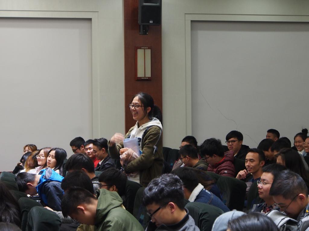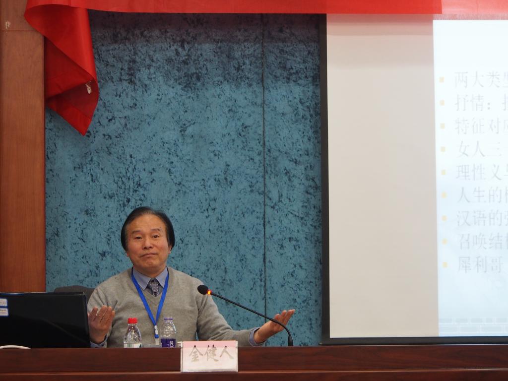 首先,金教授以视频中:“我是盲人,请帮帮我”、“这是美好的一天,我却什么也看不见”两句同义却不同效果的表达,指出了对语言的理解以及语言存在的重要性。接着,金教授详细讲解了科学语言、日常语言及文学语言三种语言的特点,还简单介绍了文体语体的谱系,点明不同要求的文体有不同的特点。接下来,金教授分别解释了科学表达、日常表达、文学表达存在的差异,以恩格斯在马克思墓前的讲话为例,指出了话语的惯用式;以环球小姐在媒体前的答复为例,指出了在日常语言中要有内涵有智慧。之后,金教授结合自身案例展开了对于文明程度越高,创造力越小的讨论,以“女朋友和女的朋友的区别”为例,让同学们各抒己见。金教授拿美国诗人威廉斯的《想对你说》分别以便条式和诗的形式进行比较;以艾青早期作品《两棵树》的图和诗为例,指出诗可一层层慢慢分析出字面外的深刻意义。