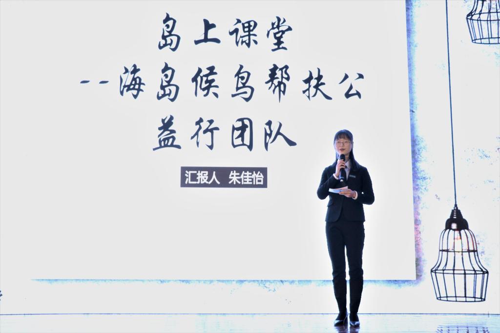 教育关爱专场,来自省内11所高校团队参加了现场展示。人文、教育学院岛上课堂—海岛候鸟帮扶公益行实践团从实践内容、实践创新性等方面展示活动成果。岛上课堂是学院自2004年起开展的实践活动。从舟山、册子岛再到普陀山等各个岛屿,团队自编教材,将实践活动开展与专业人才培养相结合,将海洋文化带入课堂,让海洋文化走到海岛乡间。让海洋文化代代相传,生生不息。
