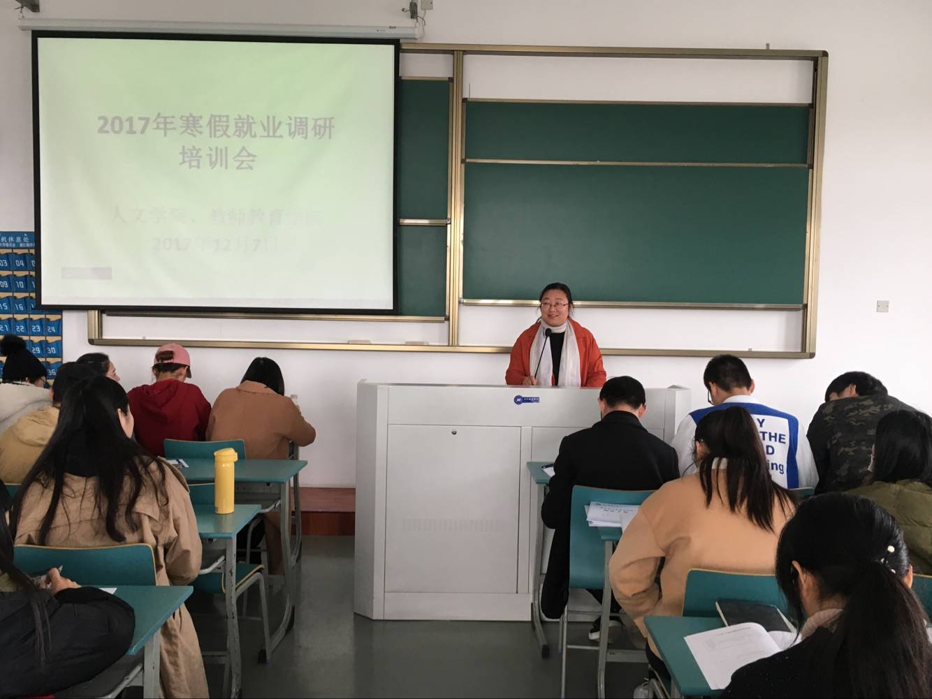 12月7日中午十二点五十,人文学院、教师教育学院2017年寒假就业调研培训会在长峙校区教学楼430举行。人文学院、教师教育学院学工办主任曹虹出席此次培训会。