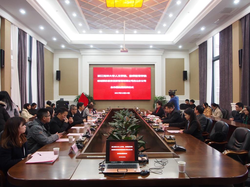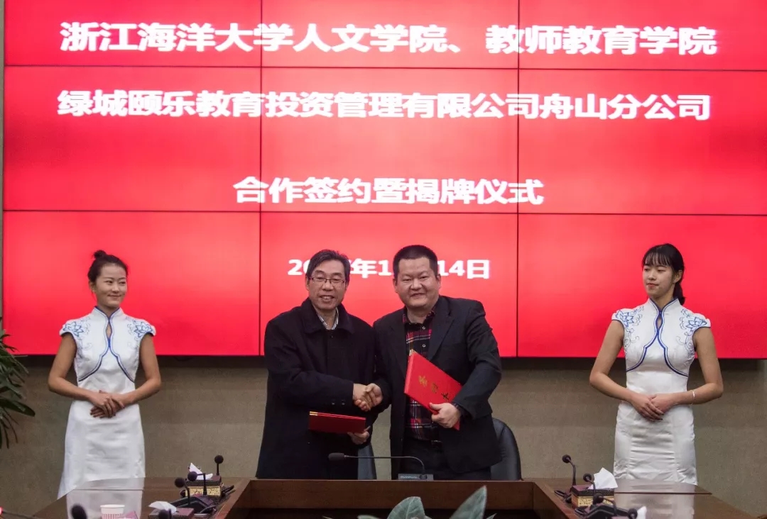 12月14日下午三点半,人文学院、教师教育学院与绿城颐乐教育投资管理有限公司战略合作签约仪式在长峙校区行政楼6号会议室顺利举行。永利集团官网校党委副书记吴中平,人文学院、教师教育学院党委书记宋秋前,党委副书记张祎星,人文学院、教师教育学院艺术教研室副主任孙靓,蓝城颐养集团CEO锡梓英,绿城颐乐教育投资管理有限公司副总经理、兼颐乐学院全国校长王昕,绿城颐德养老服务有限公司总经理陈军锋,舟山绿城房产生活服务公司副总刘美娣等领导亲临现场,共同见证并进行了签约仪式。