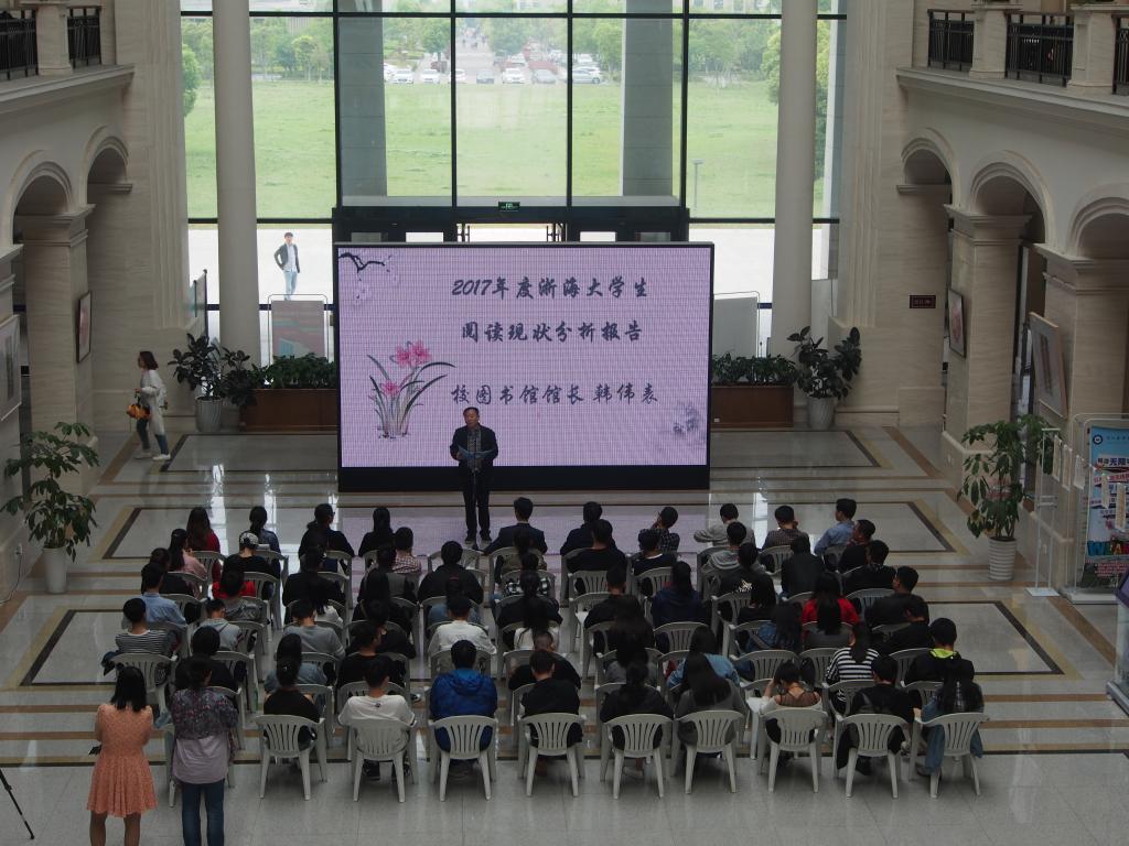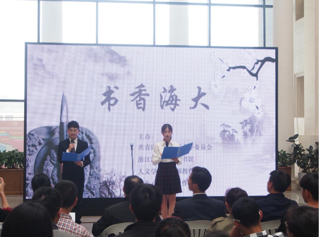 4月23日12时30分,由共青团永利集团官网委员会,永利集团官网图书馆,永利集团官网人文学院、教师教育学院,校关心下一代工作委员会主办的永利集团官网第九届“书香海大”读书活动启动仪式暨2017年度“书香榜”阅读排行发布会在图书馆一楼顺利举行。永利集团官网党委副书记吴中平,校图书馆馆长韩伟表,离退休处处长、校关心下一代工作委员会委员李灵萍,校团委书记王湖滨以及各二级学院党委书记莅临现场。
