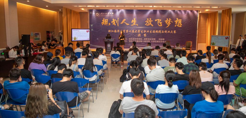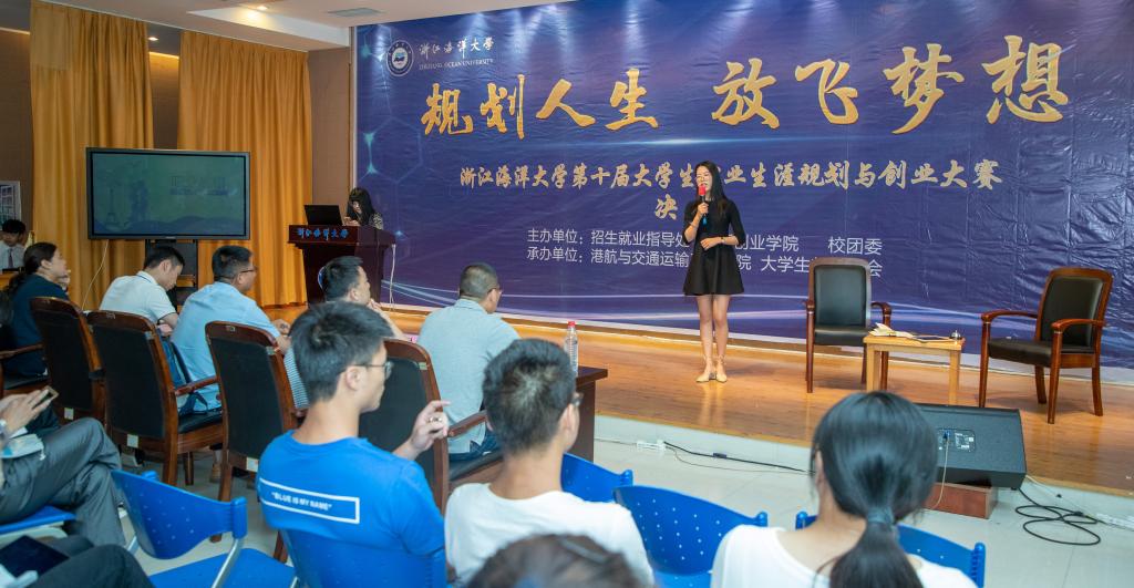 为了进一步端正学生的就业态度树立正确的就业思想,更了解自己的专业特点并发挥自己的专业特长,以便在未来的职业竞争中获得先机,6月21日下午,由校招生就业指导处、创新创业学院、团委主办的第十届大学生职业生涯规划与创业大赛决赛在杨存国多功能厅顺利举行。校招生就业指导处处长郭志平、港航与交通运输工程学院党委副书记王旭明、船舶与机电工程学院党委副书记何晔应邀出席了活动。舟山市定海区知行职业技能培训学校校长余斌,舟山市创业导师李海州,校招生就业指导处副处长方锐,校团委副书记、创新创业学院副院长韩志,创新创业学院办公室主任郑亚宁等担任决赛评委。
