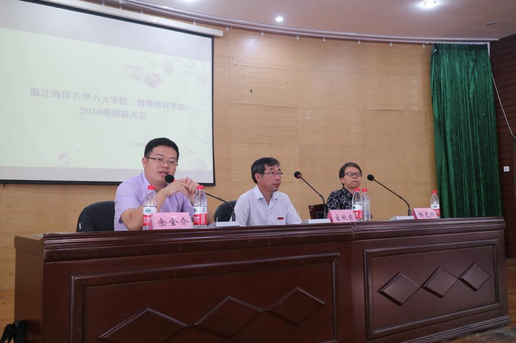 为迎接2018级新生的到来,助其尽快熟悉和适应大学生活,9月10日上午九点三十分,人文学院、教师教育学院2018级迎新大会暨“书记第一课”在定海校区活动中心二楼报告厅顺利举行。人文学院、教师教育学院党委书记宋秋前,副院长杨光熙,院长助理余全介,18级新生班主任,辅导员,全体行政人员及教师代表们出席,院长助理余全介主持本次迎新大会。