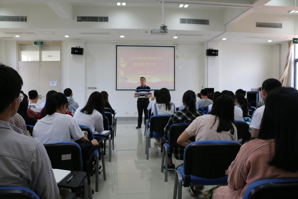 10月8日中午十二点半,人文学院、教师教育学院大学生挑战杯课外学术科技作品竞赛宣讲会会于文理楼301成功举行。本次宣讲会邀请了校团委副书记、创新创业学院副院长韩志为大家进行经验分享。宣讲会由人文学院、教师教育学院团委副书记傅林静主持,东海发展研究院研究员楼正豪,人文、教育学院教师陈默以及团学干部、意向报名参加挑战杯的学生参加本次培训。
