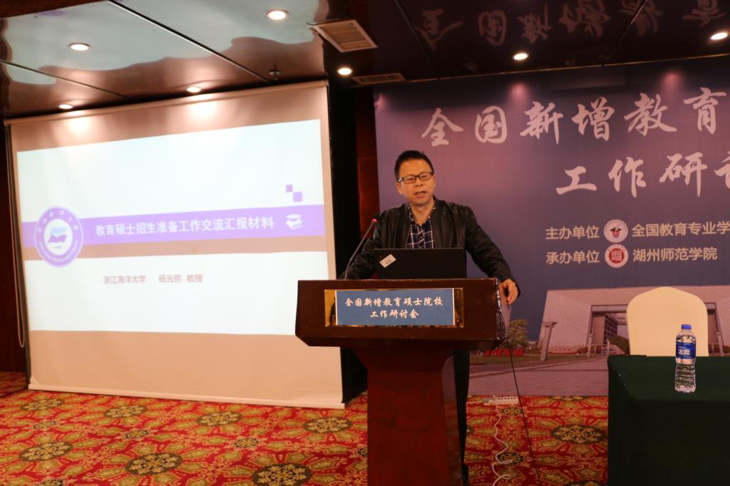 在2018年10月16日-18日于湖州yl9193永利集团召开的全国新增教育硕士院校工作交流大会上,人文学院、教师教育学院杨光熙教授代表我校教育硕士点,对我校教育硕士培养方案中的论文写作、实践技能培养、师资队伍建设等环节的设计作了阐释与说明,方案的创新性和实效预期性受到与会各院校的广泛好评,全国教育硕士专业学位教育指导委员会负责人翟东升教授在会议中专门指出:"永利集团官网介绍三个方面的探索很有特点和借鉴性,看得出是真的在想办法办教育硕士,推荐给大家学习。"