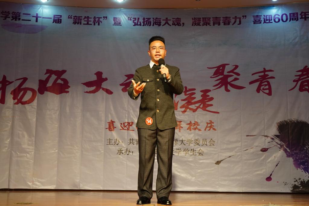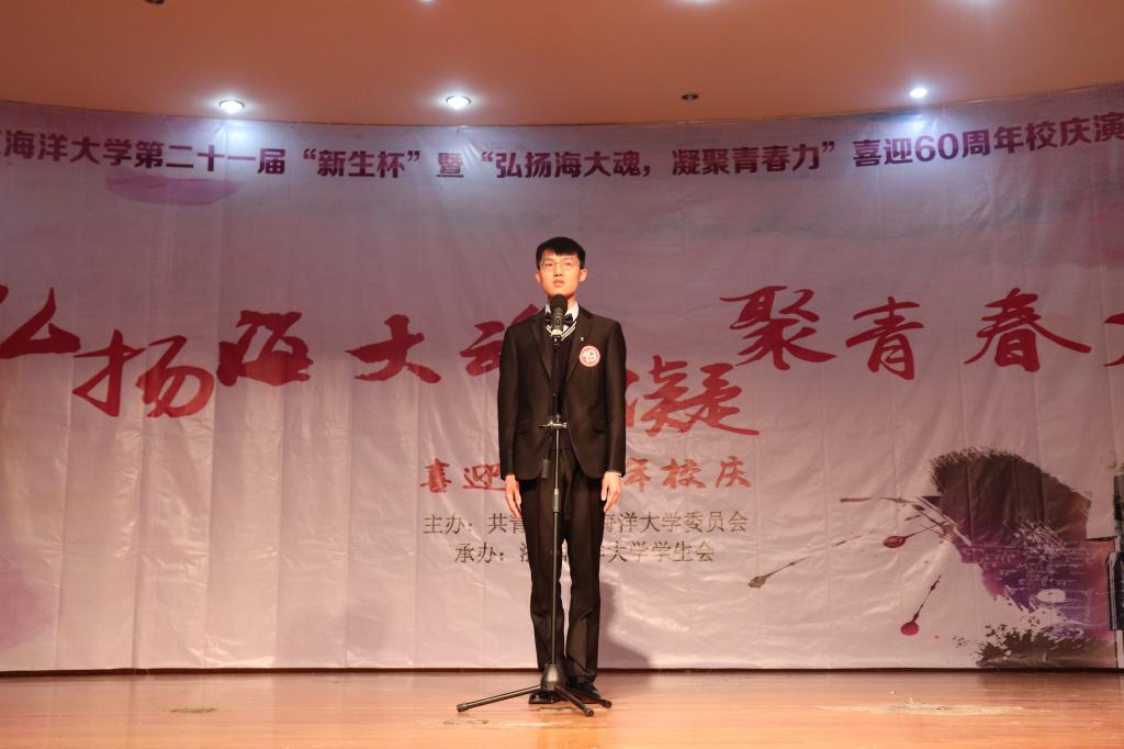 比赛中,来自A18中文的商睿讲述着他家乡的方言,随着普通话的普及,方言逐渐被一部分人遗忘,如何在这个时代褪去满身铅华,洗净连路奔波的风沙与尘土,给自己一个开口讲方言的机会。而B18中文2班的程志远则穿着一身军装为学校发声,“守望海大的人,最了解海大的冷暖;记录海大的人,最了解海大的悲欢。”B18历史的段泽徐发出了《寻找那群人》的呼喊,他的演讲让在场的人感受到了他对学校深深的爱。