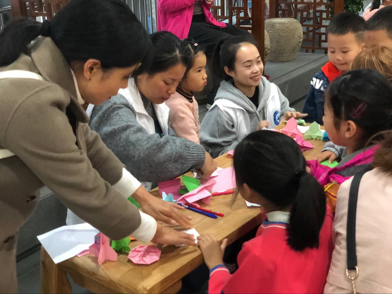 渔民号子传声筒、猜猜“我”是谁、我是动手小达人、海洋知识大闯关等亲子闯关竞猜活动在博物馆一楼大厅如火如荼地展开。二楼大厅里,一双双巧手将彩纸变为各种海洋动物。更有海洋特色书法,将博大精深的中华文化带入孩子们的精神世界。家长与小朋友通力合作完成任务,小朋友们不仅增长了知识,提高了动手能力,还增进了与家长之间的默契。