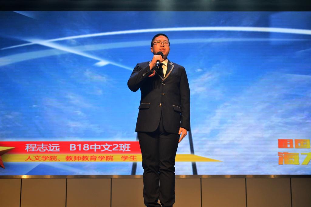 经过第一轮的比拼,段泽徐等九位选手晋级第二轮比赛。在第二轮的冠军争夺战中,九位晋级选手上台抽取情景材料并进行即兴演讲。段泽徐抽取到的是以“开始”为话题,精心准备后,他表示在赛场上认识“开始”,心存希望,并以董聿茂、戴应奇等优秀学长为例,鼓励众人立足自己专业,用凝聚力、创造力开创美好未来。经过将近三个小时的激烈角逐,最终,段泽徐同学荣获本次演讲赛一等奖。