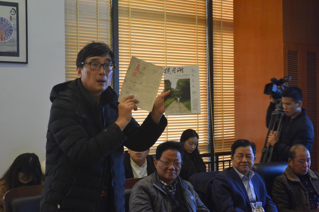 华海坤老师介绍《揽月湖》杂志社情况。时隔四十年,时代在变,创作的方式也不同。如今的《揽月湖》创办了公众号,与新媒体接轨。但是,现在的创作激情已不如前。他表示,希望中文系校友们能给予指导,传授经验,再次激发大家的创作激情。