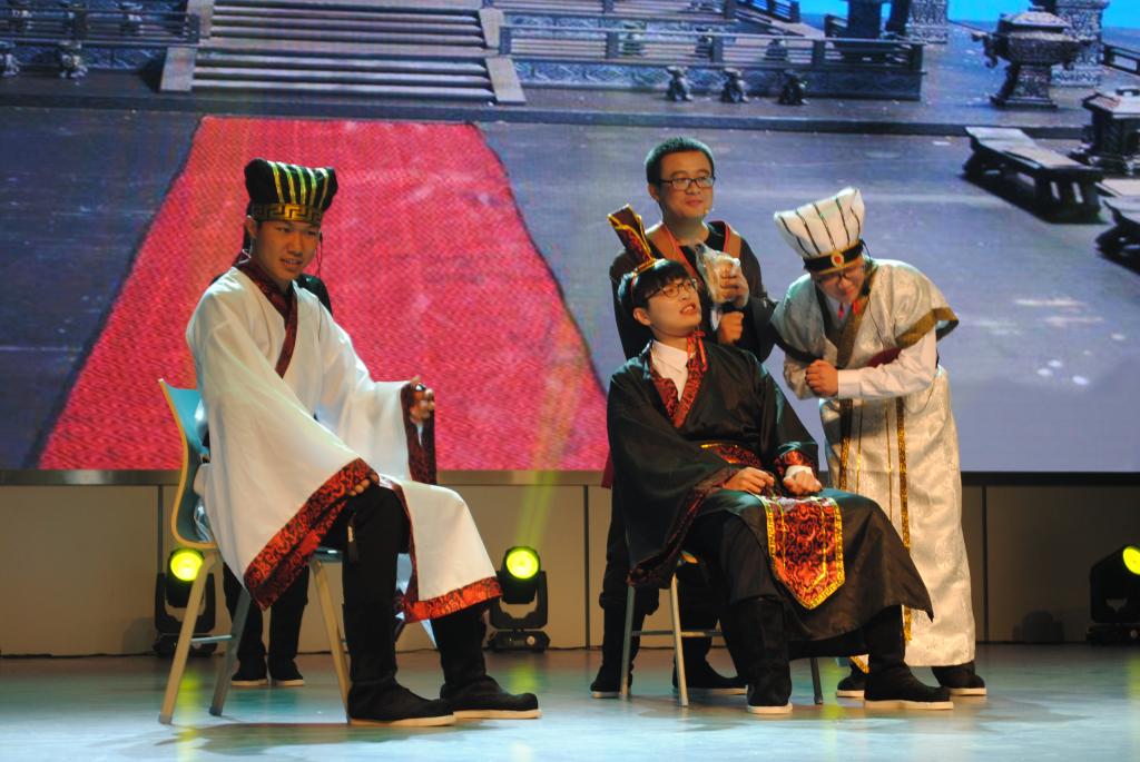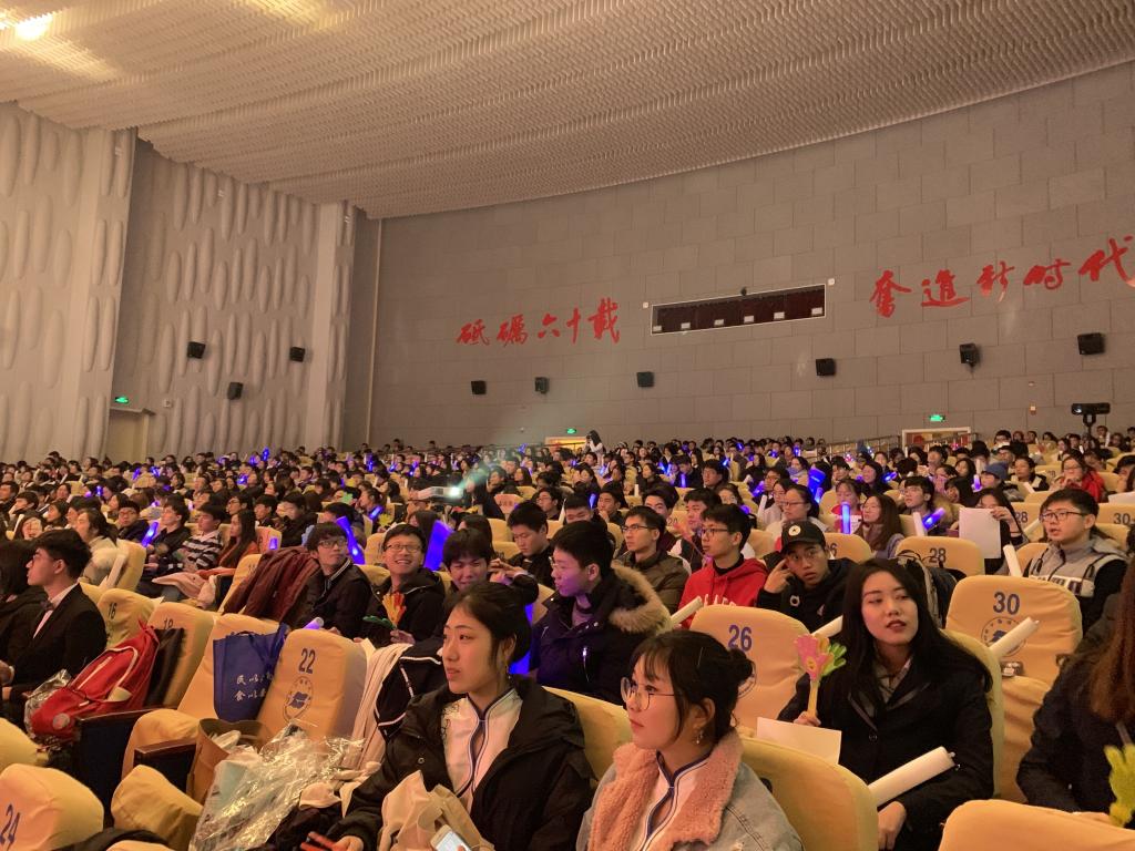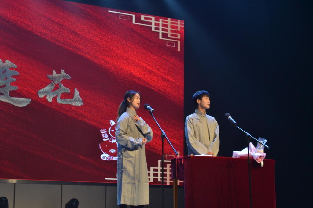 迎新晚会在动感的文教特色走秀中正式拉开帷幕。本次晚会由“人间”“江湖”“宇宙”三个篇章组成。杨光熙副院长对我院于2018年取得的重大成就做了总结,并将祝福和希望寄予我院与诸位新生。致辞过后,丰富多彩的节目让师生们沉浸其中。从青春洋溢的新生杯子舞《稻香》到活力四射的爵士舞《Hot》,让观众如痴如醉;相声《口吐莲花》和历史剧《齐王建的真香警告》妙趣横生,博得阵阵掌声;男生合唱《欢乐的那达慕》和笛子独奏《大青山下》壮阔华美,仿佛置身于广阔的内蒙古大草原;锣鼓《渔港晨曲》生动展现舟山大美,诗朗诵《2018你们走了》真切缅怀时代大师;金庸歌曲串烧将晚会推向高潮,最后一曲《光年之外》表达了文教学子决心不忘过去、立志探索未来。
