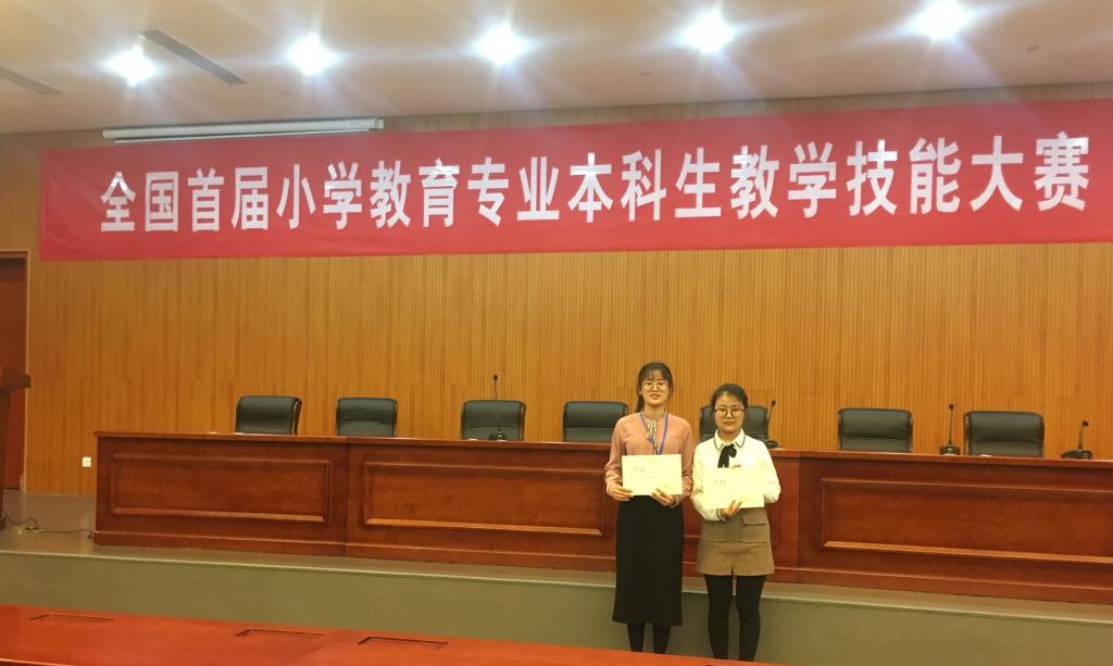 近日,由教育部高等学校小学教师培养教学指导委员会和中国高等教育学会教师教育分会小学教育委员会共同主办,杭州师范大学承办的全国首届小学教育专业本科生教学技能大赛落幕。我院小学教育专业叶宁淼同学获得本次大赛语文组二等奖,赵琦桧同学荣获数学组三等奖。