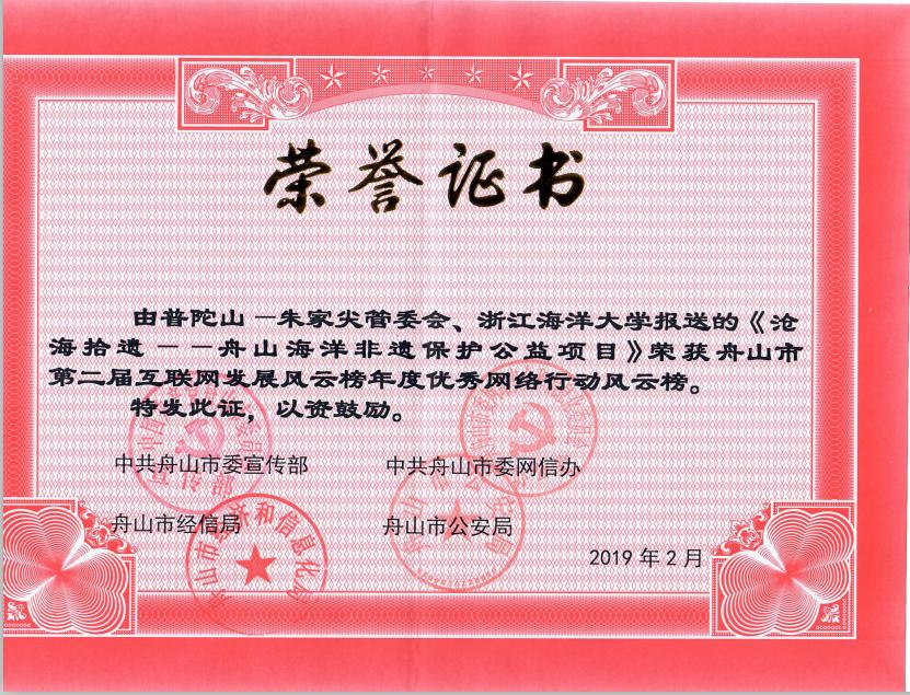 2月26日,舟山市第二届互联网发展“风云榜”奖项结果揭晓。由永利集团官网人文学院、教师教育学院申报的“沧海拾遗——舟山海洋非遗保护公益项目”入选年度优秀网络行动。