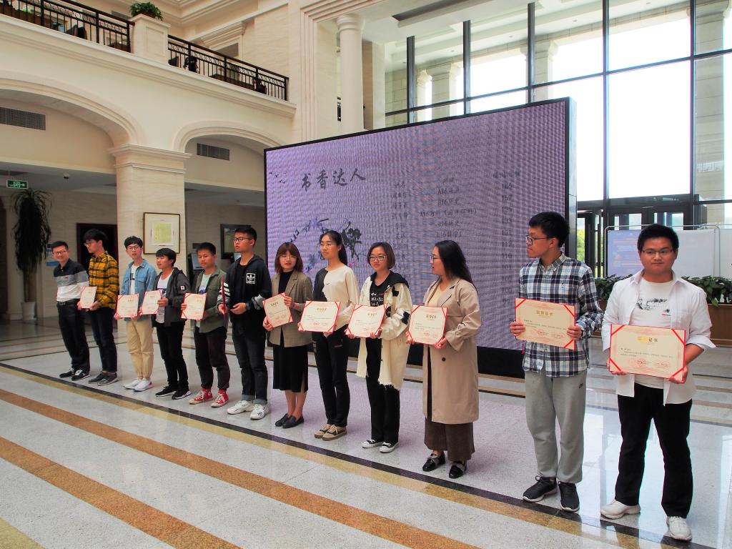 在启动仪式上,校团委书记王湖滨代表主办方介绍了第十届“书香海大”活动安排,图书馆馆长韩伟表对2018年度永利集团官网学生阅读状况进行了分析报告,介绍数字图书馆的建设情况及可喜效果。随后,由各位嘉宾为获得荣誉称号的同学与班级颁奖。据悉,本次“书香海大”读书活动在2018年度学生图书借阅量的基础上共评选出刘新宇等11位书香达人,B17历史等10个书香班级,王佳浩等11位专业读书之星。最后,校党委副书记叶舟总结发言,引用孔子的“博学之、审问之、慎思之、明辨之、笃行之”,要求同学们读书“善读书”“常读书”“读好书”并学以致用,要把读书学习的成果转化为自身的实际能力。不断超越自我,勇于上进。