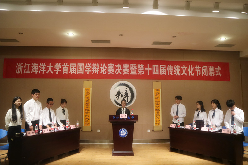 为了弘扬传统国学,加强我校学生的国学文化素养,丰富课余生活,永利集团官网首届国学辩论赛决赛暨人文、教育学院第十四届传统文化节闭幕式于4月26日晚6点在杨存国2号报告厅顺利举行。本次活动由共青团永利集团官网委员会,人文学院、教师教育学院,马克思主义学院,离退休处主办。发展规划处处长程继红教授,离退休第四党支部、原人文学院副教授虞卓娅老师,人文、教育学院教授胡世文老师,人文、教育学院教授闵泽平老师,马克思主义学院马忠杰老师担任本次活动的评委。舟山市诗词学会会长缪海平老师,校团委副书记陶芳芝老师,人文、教育学院团委副书记傅林静老师出席本次活动。