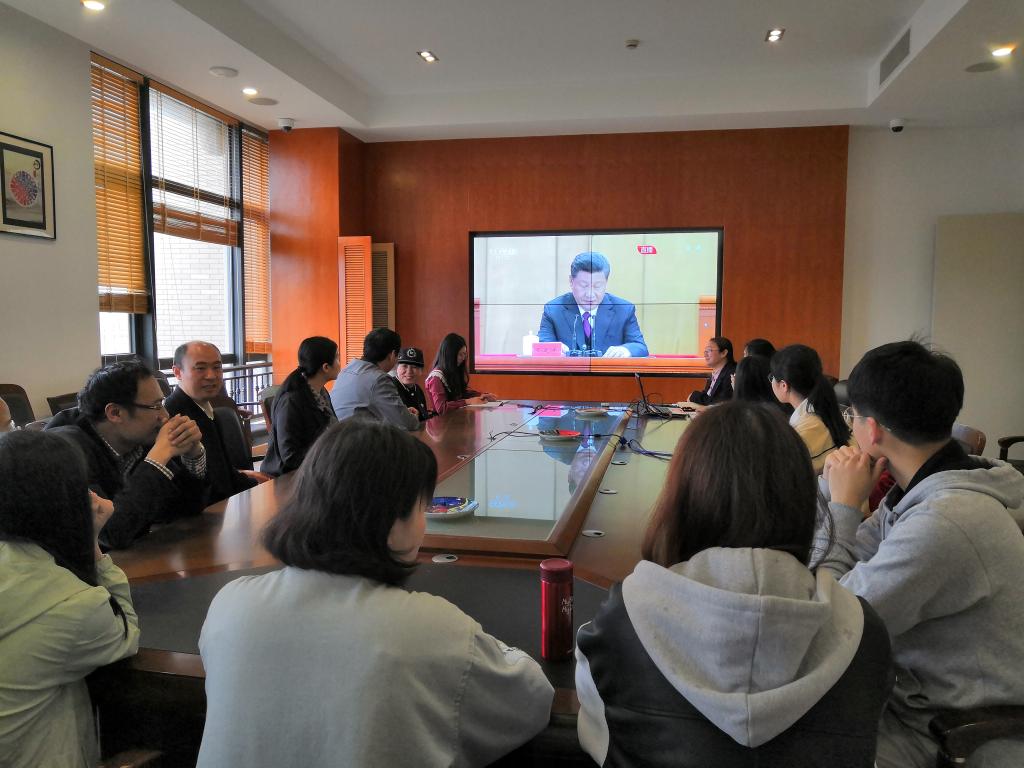 2019年4月30日上午10时30分,纪念五四运动100周年大会在人民大会堂隆重举行。中共中央总书记、国家主席、中央军委主席习近平将出席大会并发表了重要讲话。人文、教育组织师生党员、入党积极分子、各团支部在文理楼418以及教室中收看纪念五四运动100周年大会,学院党委副书记张祎星、教工教工第一党支部书记王潇音、教工第二党支部书记罗毅、学生第一党支部书记曹虹以及教师党员参加本次活动。