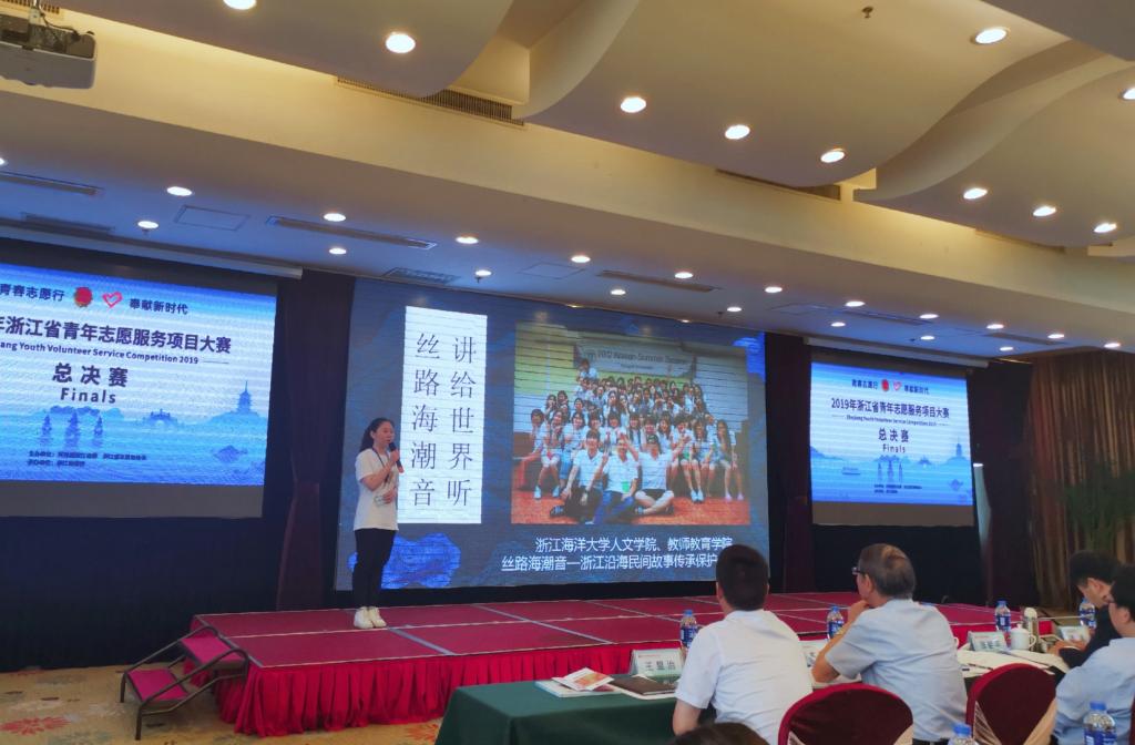 为深入贯彻落实党的十九大精神,引导志愿服务组织和广大志愿者在新中国成立70周年、五四运动100周年之际,为奋力推进“两个高水平”浙江建设做出更大贡献。由团省委、省志愿者协会联合主办的2019浙江省志愿服务项目大赛于6月13日至14日在浙江省团校落下帷幕。通过前期项目申报、省级评审,来自浙江省各政府部门、社会组织、企事业单位、高校的100个项目入围。其中,永利集团官网人文学院、教师教育学院,永利集团官网国际交流合作处,普陀团区委合作申报的《丝路海潮音,讲给世界听—浙江沿海民间故事传承保护公益项目》从众多项目中脱颖而出,斩获金奖。这是文教学院连续三年在本次赛事中斩获佳绩!