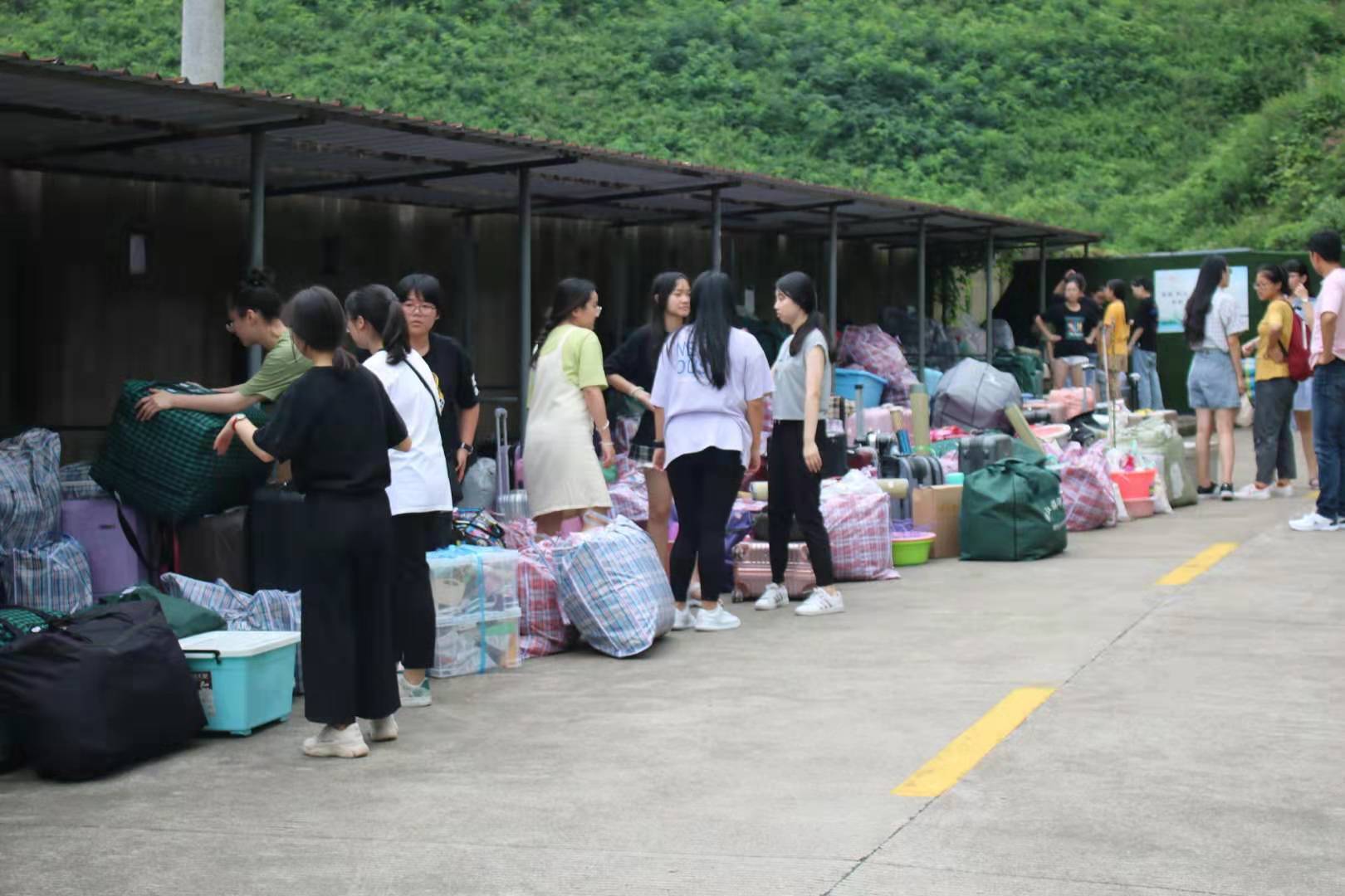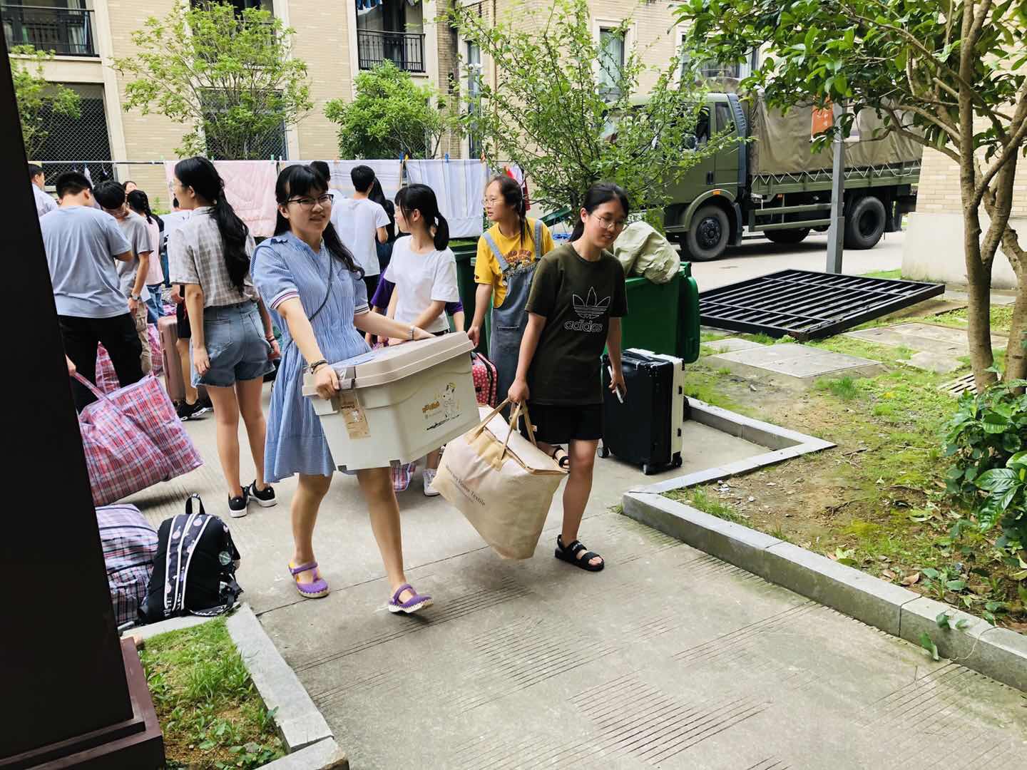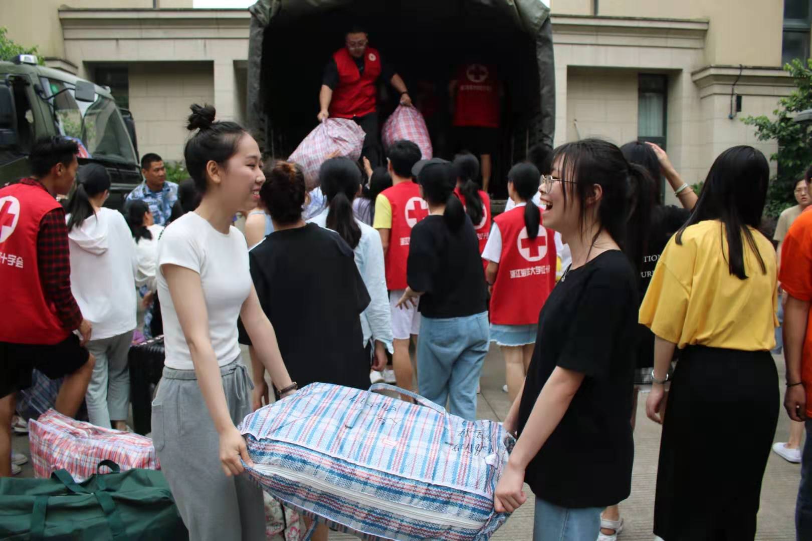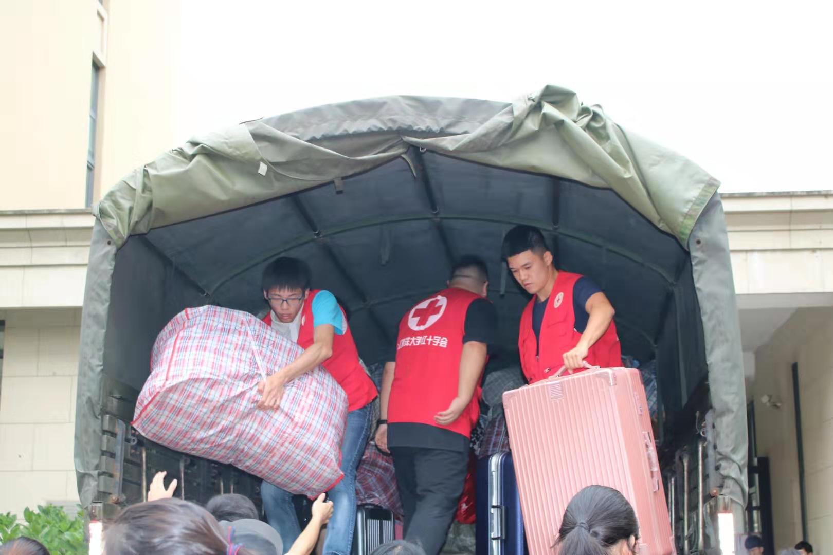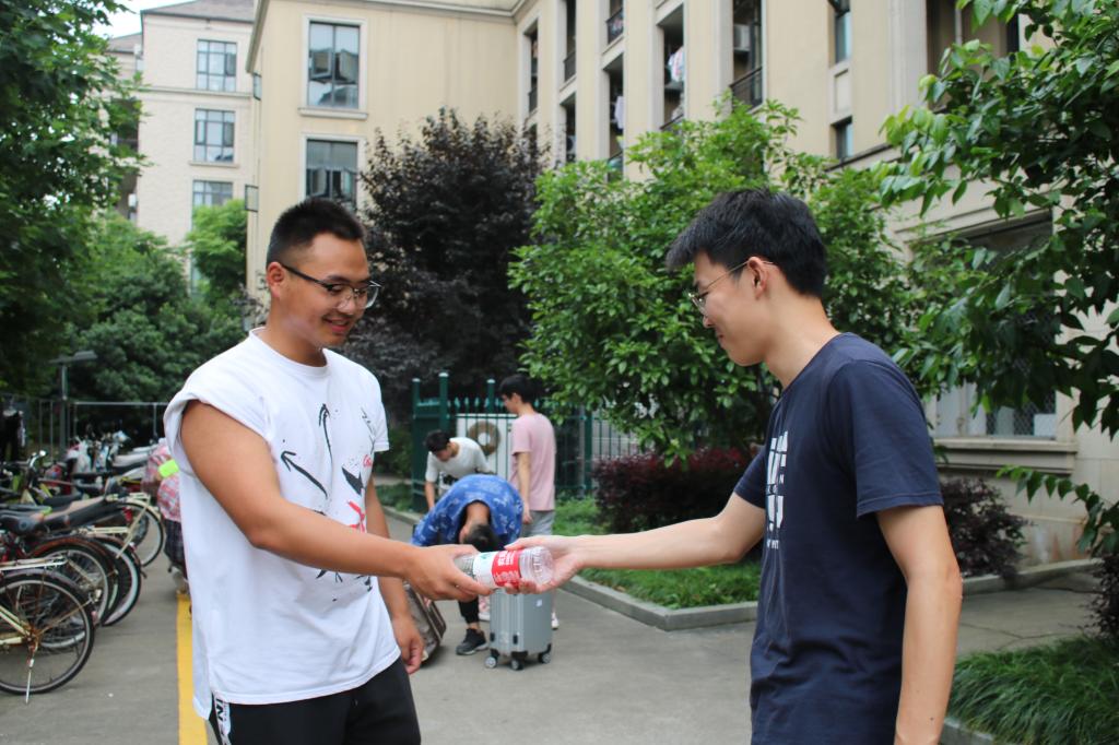 搬迁准备期间,同学们合理利用学校分发的搬迁用具,将行李整理得井井有条。搬迁当日,他们互帮互助,勠力同心,将所有行李搬至等候区。在场的教师与工作人员不惧天气的闷热,尽心尽责维护秩序,指挥若定,在保障学生们安全的同时,一切工作也进行得有条不紊。搬迁所需的货车与客车准时到达,装车工作毫不拖沓,让搬迁工作始终保持着快节奏、高效率的状态。而在定海、长峙两个校区默默无言地帮助同学们搬运行李的志愿者们,更是为本次搬迁工作增添了一抹温馨的色彩。