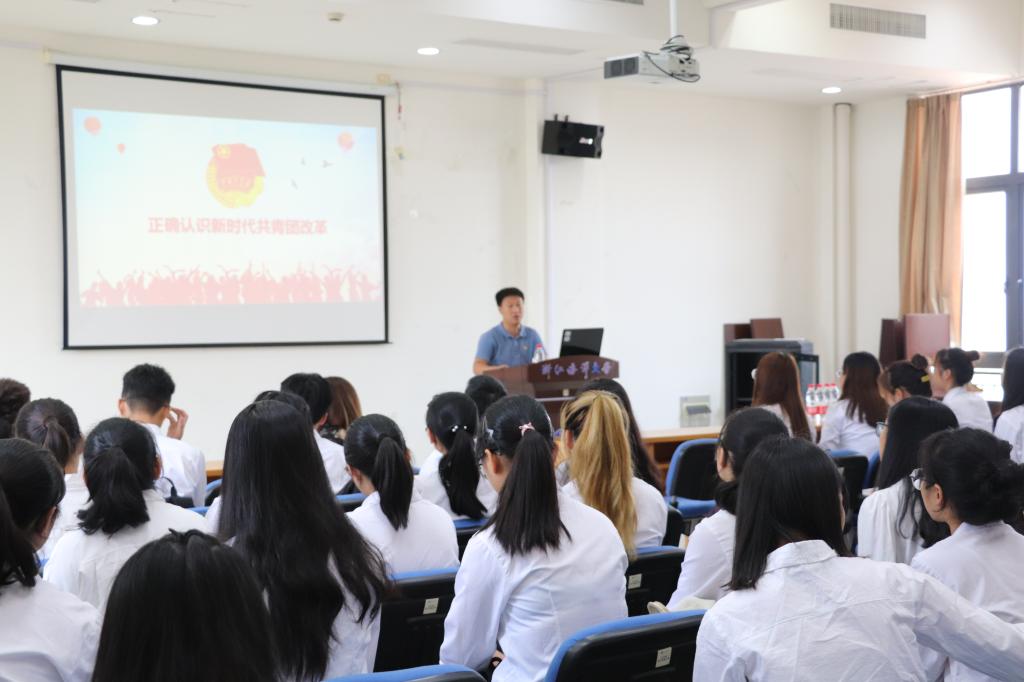 开班仪式在一首《团歌》中拉开帷幕,首先傅林静老师介绍了培训班的整体情况,举办明德培训班是实行“青年马克思主义者培养工程”的主要内容,他建议同学们在学习中反思,在反思中成长。开班仪式后,王湖滨书记进行了培训班第一讲:正确认识新时代共青团改革。王书记对共青团定义、共青团改革的背景、共青团改革的举措以及学校共青团改革的具体措施等方面进行了详细的阐述。最后,王书记引用习近平总书记对青年人提出的六点殷切希望鼓励学生干部要“修身立德、诚信爱国、以身作则”。