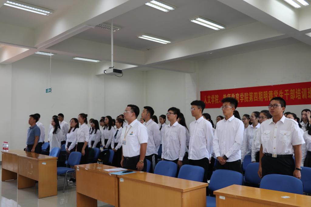 9月9日中午12:30,人文学院、教师教育学院第四期明德学生干部培训班开班仪式在文理楼301报告厅顺利举行。本次开班仪式由学院团委副书记傅林静主持,校团委书记王湖滨出席,学院学工办主任曹虹,辅导员张军,学院团学干部、各班班长、团支书参加。