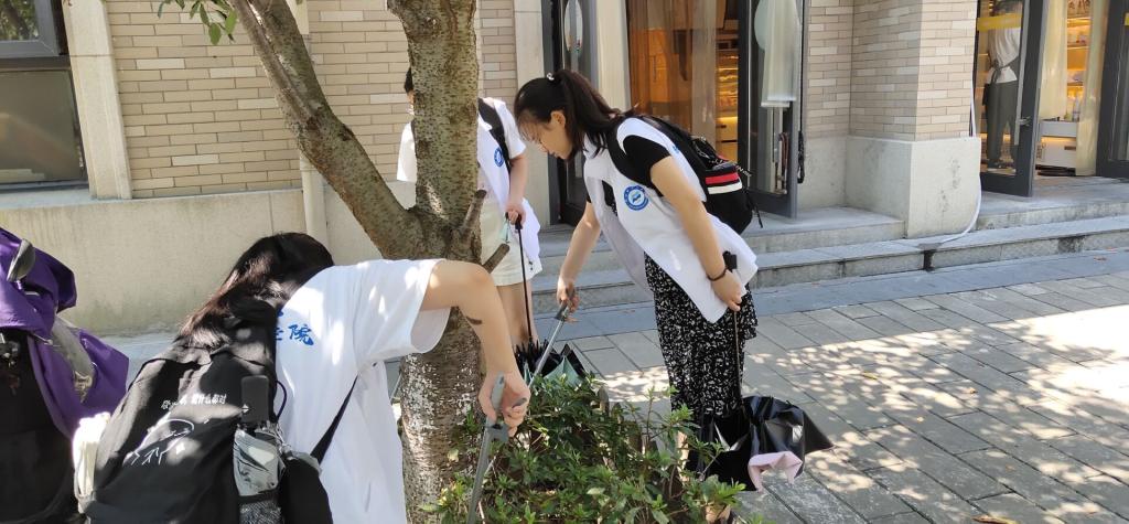 烈日当空,天气暑热,志愿者们却无惧困难,积极响应创城号召,仔细检查校医院、食堂和p幢寝室楼三块区域的环境卫生情况。他们穿行在草木之间,寻找烟头,发现果核,清扫碎纸屑,捡起塑料瓶,并对各类垃圾进行了分类处理,留下干净清洁的校园一角,营造出更令人身心舒适的学习氛围。