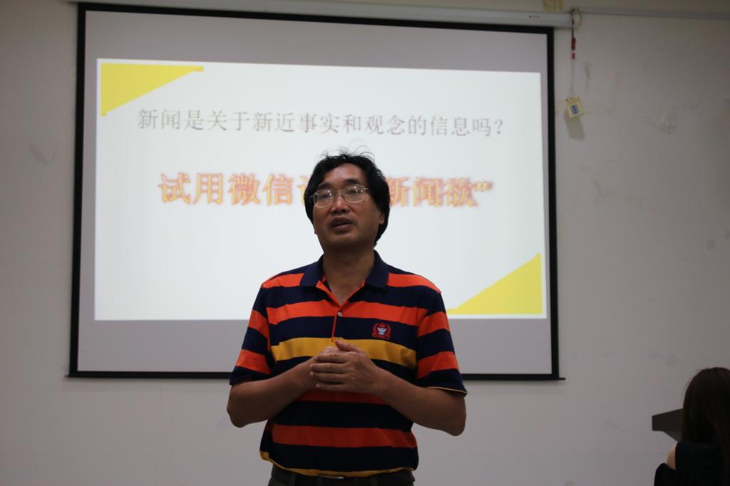 9月19日晚六点半,人文学院、教师教育学院第四期明德学生干部培训班第七讲“新闻采访与写作”在文理楼301顺利举行。本次分享会由学院团委副书记傅林静主持,中文系副教授瞿明刚老师主讲,学院全体学生干部、各班班干部参加。