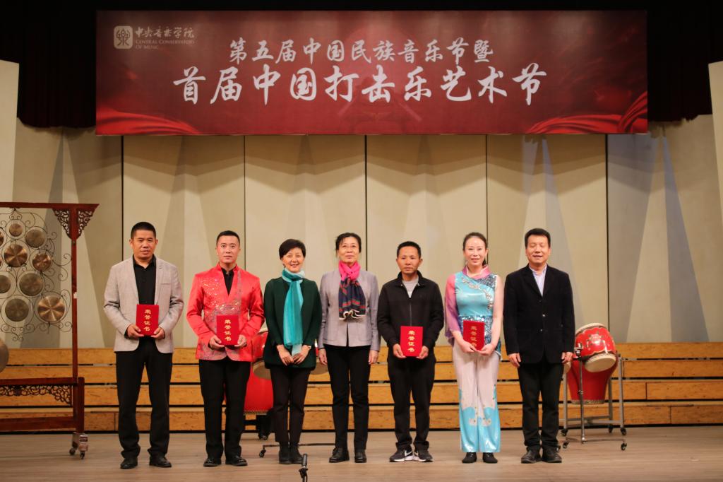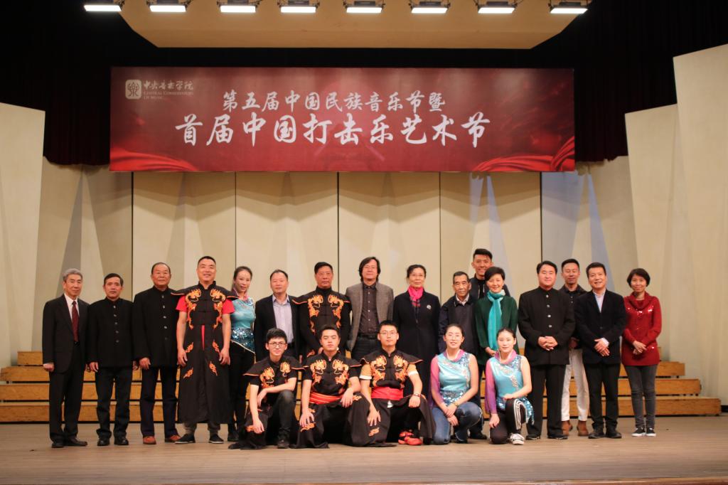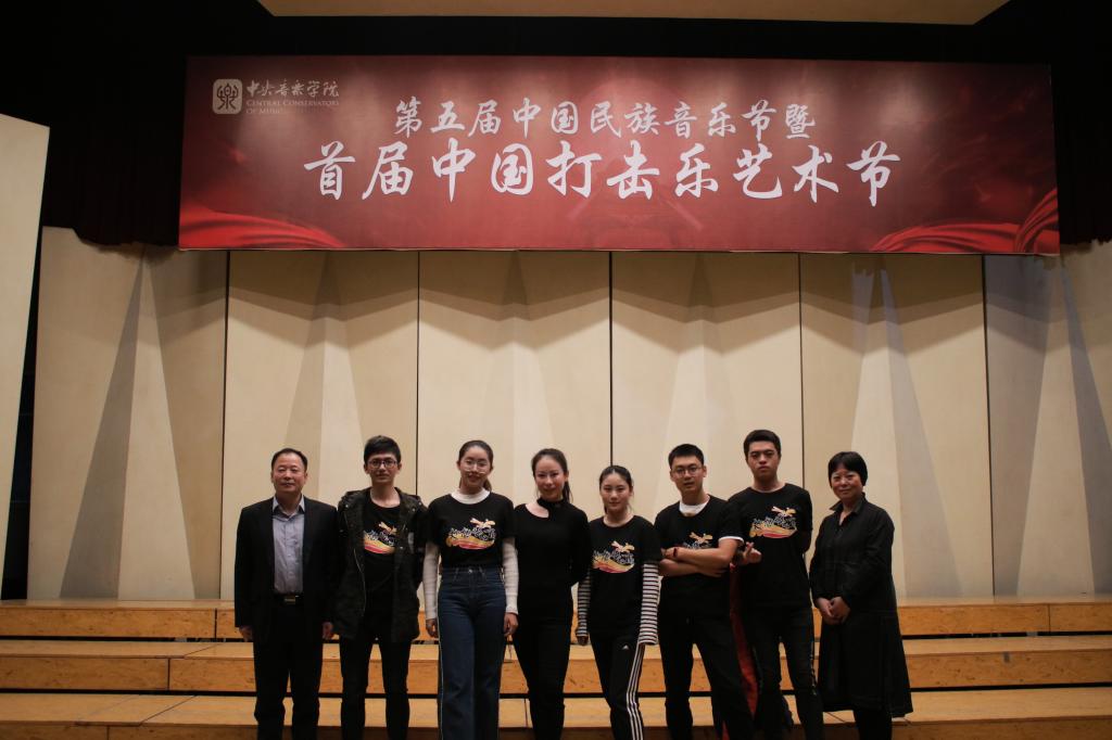 10月17日—18日,由中央音乐学院主办、中央音乐学院民乐系承办的第五届中国民族音乐节暨首届中国打击乐艺术节在中央音乐学院举办。永利集团官网舟山锣鼓团队有幸受邀,由人文学院、教师教育学院艺术教研中心主任王艳娣、锣鼓队指导教师费凡带队前往北京,于17日晚上七点半在中央音乐学院王府音乐厅为中央音乐学院的师生们表演了《沸腾的渔港》、《蛟龙出水》及吹打乐《贺郎调》三支曲目。人文学院、教师教育学院院长韩伟表受邀观看演出。