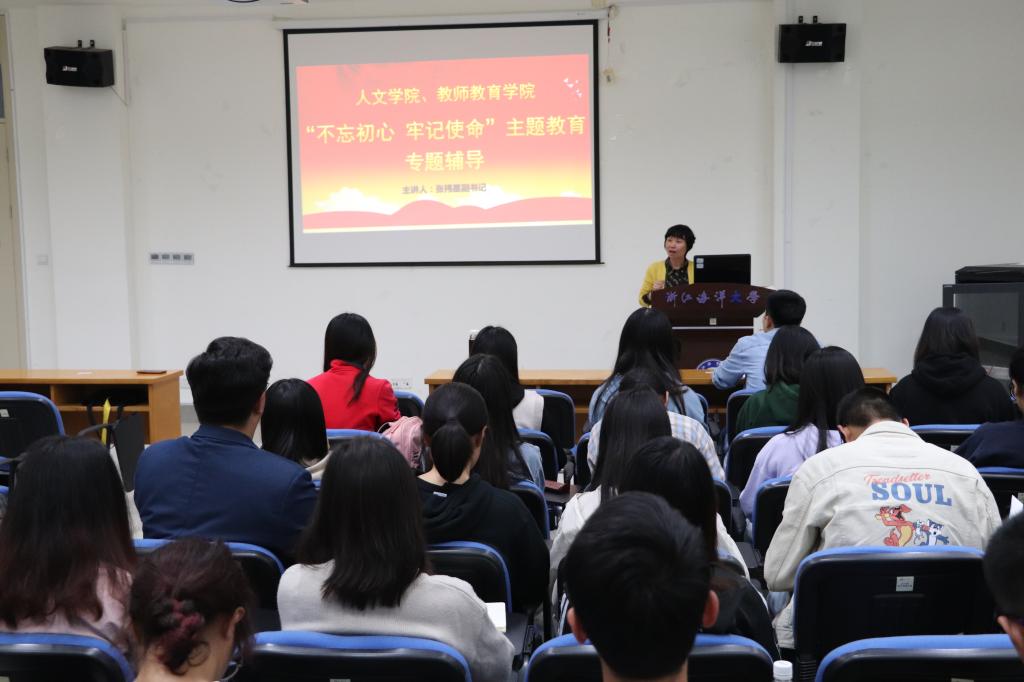 近日,人文学院、教师教育学院“不忘初心、牢记使命”主题教育专题辅导讲座在文理楼301顺利召开。本次辅导课由学院党委副书记张祎星主讲,学院全体班学生干部、班干部及社团负责人等积极参与。