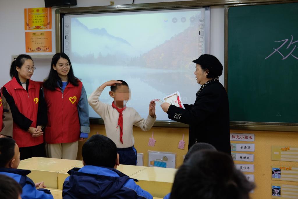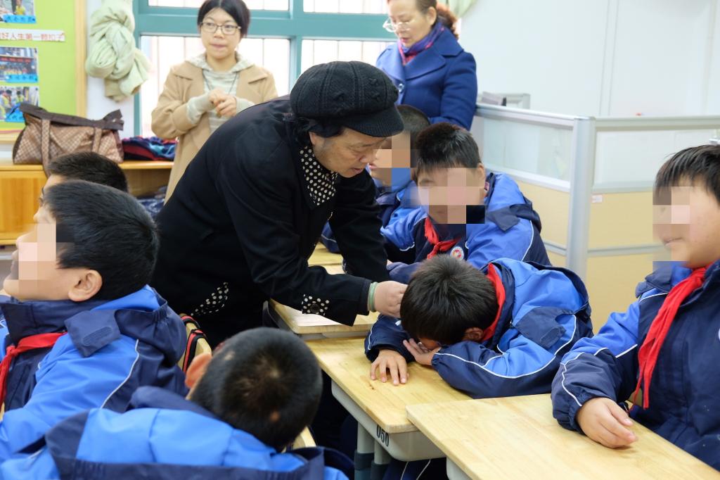 海葵班是人文学院、教师教育学院学生党支部与离退休第四党支部的结对班级,再次来到学校看望他们,孩子们都非常惊喜与热情,激动的上前来拥抱各位学生党员,一张张笑脸在寒风中绽放。在老师的鼓励下,孩子们鼓起勇气上台向大家做自我介绍后,师生党员们与孩子们共做游戏,齐唱儿歌,气氛活跃,教室里更是响起了一阵又一阵热烈的掌声,孩子们玩得特别开心,特别是当他们收到师生党员们精心挑选的围巾、零食大礼包等礼物时,更是手舞足蹈,礼貌地表示感谢。