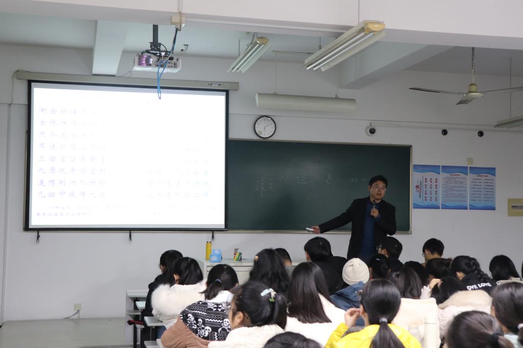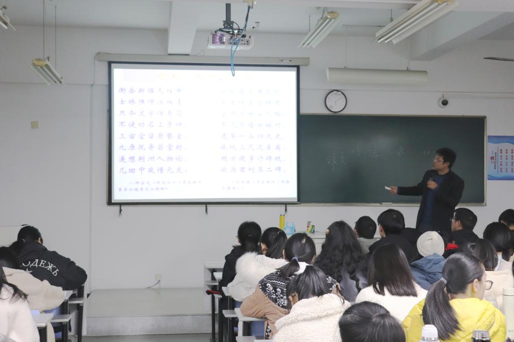12月3日晚上六点,人文学院、教师教育学院青年讲师大讲堂--杜甫《秋兴八首》与钱谦益《后秋兴》组诗讲座在定海校区379教室顺利举办。本次讲座由人文、教育学院中国古代史博士李金阳作为主讲,学院大一同学积极参加。