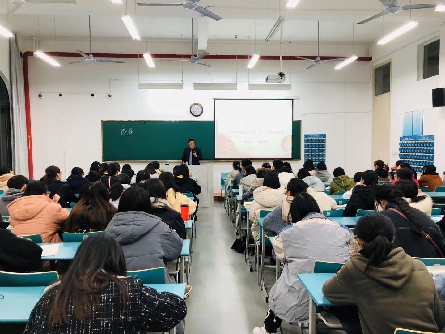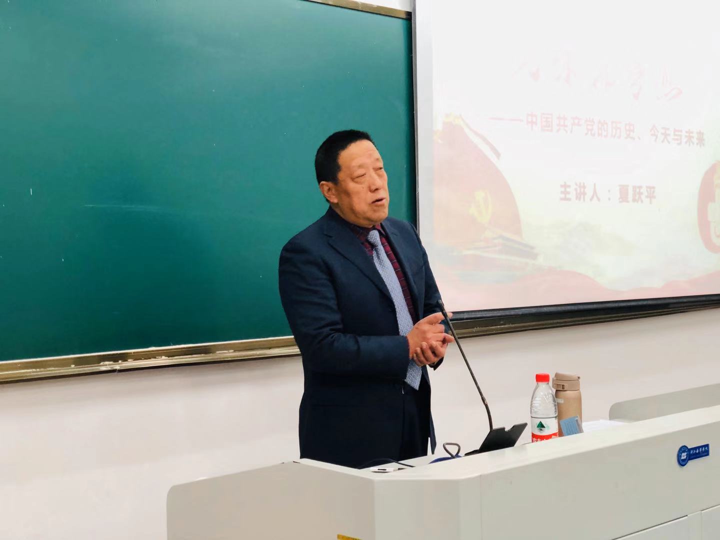 夏跃评教授以“为什么要入党”与“共产党是否值得加入”两个问题引出了本次课堂的主题——中国共产党的光荣与梦想,即中国共产党的历史、今天与未来,又对“中国梦”的含义作了详细阐释。随后,夏教授重点讲述了中国共产党发展历程中八个重大的历史转折点,即“中国共产党的诞生”、“八七会议”、“遵义会议”、“西安事变”、“重庆谈判”、“渡江战役”、“改革开放”与“党的十九大”。并总结道,在党的带领下,中国已经站起来,富起来,未来必将不断强起来。而“中国梦”正是连接着党的历史与未来发展的桥梁,有着重要的时代意义。最后,夏教授给同学们提出了几点建议:希望同学们能够学习自修之道,培养自己的自学能力、思维能力、互相学习能力尽快搭建自己的知识结构。夏教授强调,青年学子应有崇高的理想,奋斗的精神,在大学中打下将来走向社会的基础,为实现“中国梦”而勤奋学习。
