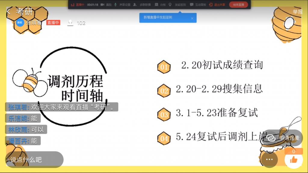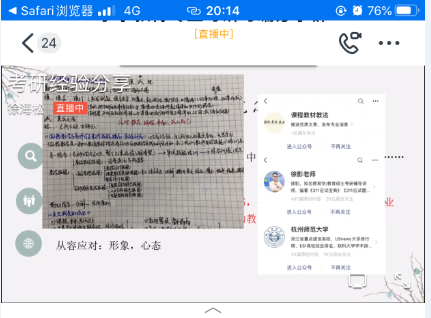 分享会上,B16小教2班暴姝雯、李敏、叶宁淼和B16小教1班朱丽珂、徐海松、张琪若依次分享她们考研成功的经验。此前,她们分别以优异的成绩考入了华南师范大学小学教育专业、浙江师范大学学科教育(语文)专业、华东师范大学学科教育(语文)专业、河南师范大学小学教育专业、杭州师范大学课程与教学论专业(学硕)以及宁波大学小学教育专业(非全)。在分享过程中,她们以自身经历为例,辅以各类资料,详细介绍了考研复试的具体流程,着重指出了准备过程中的重难点,并且对于各类参考书以及讲课老师都有仔细的分析和独到的见解。此外,大家对于同学们提出的疑惑也都耐心解答,并及时给出有用的建议。