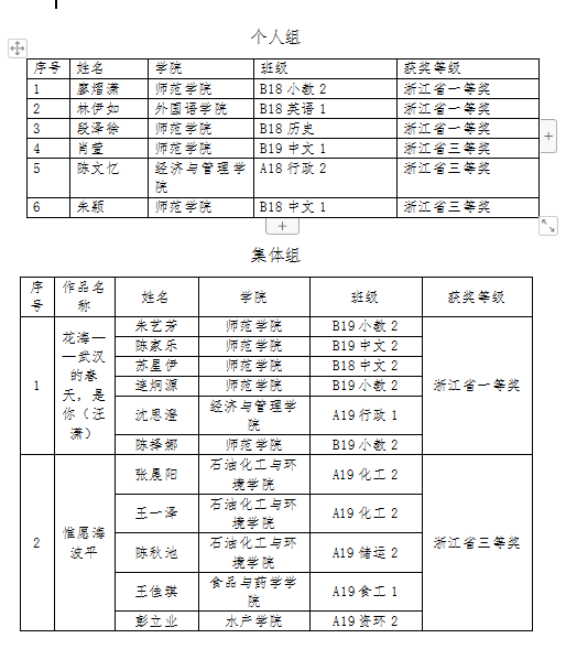 诵读中华经典,坚定文化自信。10月17日-18日,由浙江省语言文字工作委员会、浙江省大学生科技竞赛委员会联合主办的浙江省第八届大学生中华经典诵读竞赛个人组决赛在绍兴文理学院落下帷幕。经过激烈角逐,我校共获得个人组一等奖3项、三等奖3项,集体组一等奖1项、三等奖1项,胡世文、秦良杰、翟恒兴、汪汉利四位老师获得优秀指导教师,永利集团官网获优秀组织奖。我校获奖数量创历史新高,其中一等奖数量位居全省并列第一,集体组首次获得省一等奖。