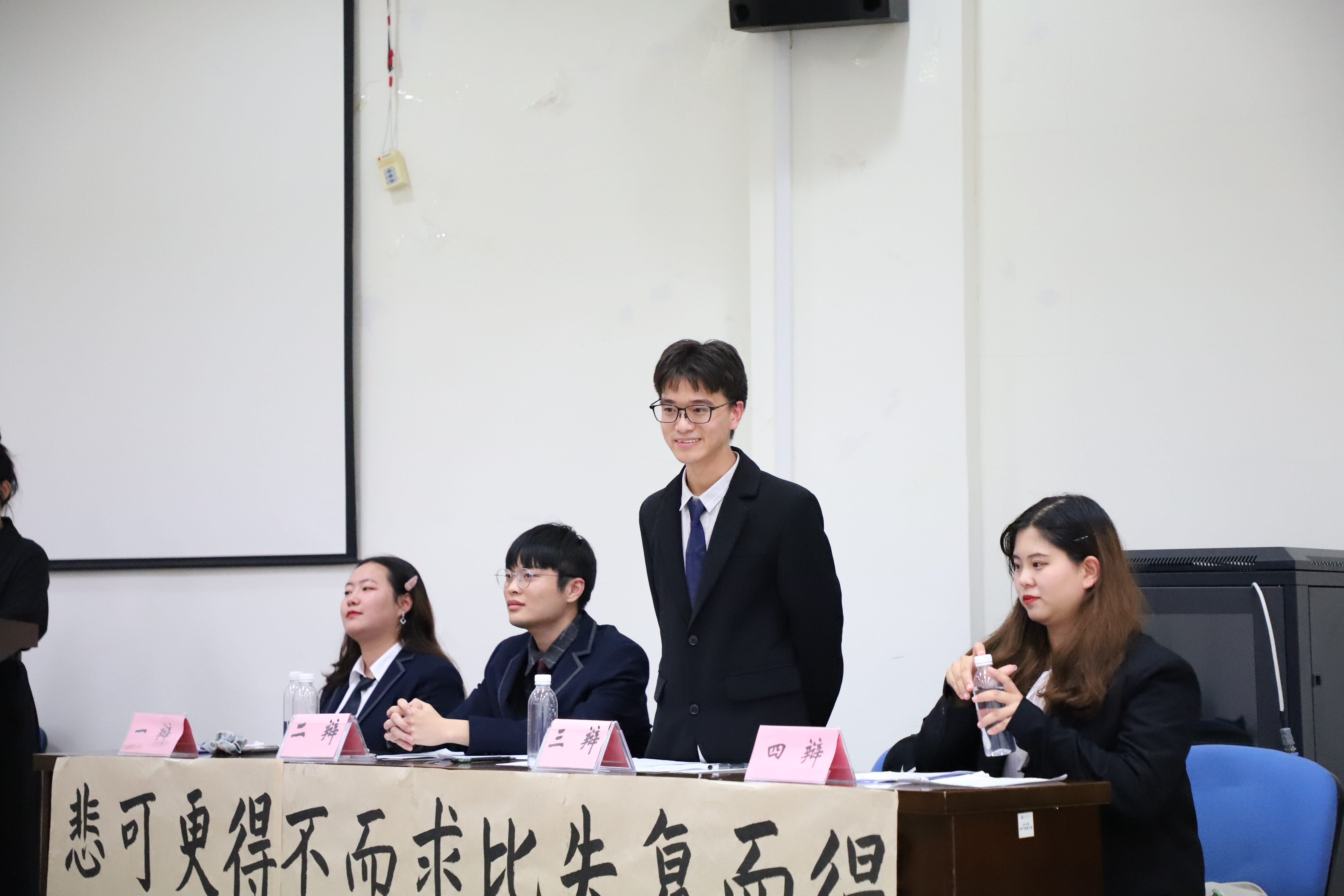 比赛结束后,双方选手对争鸣队进行简单介绍,动员和激励新生积极了解参与即将举行的“新生杯”辩论赛,并对接下来的比赛表示期待。
