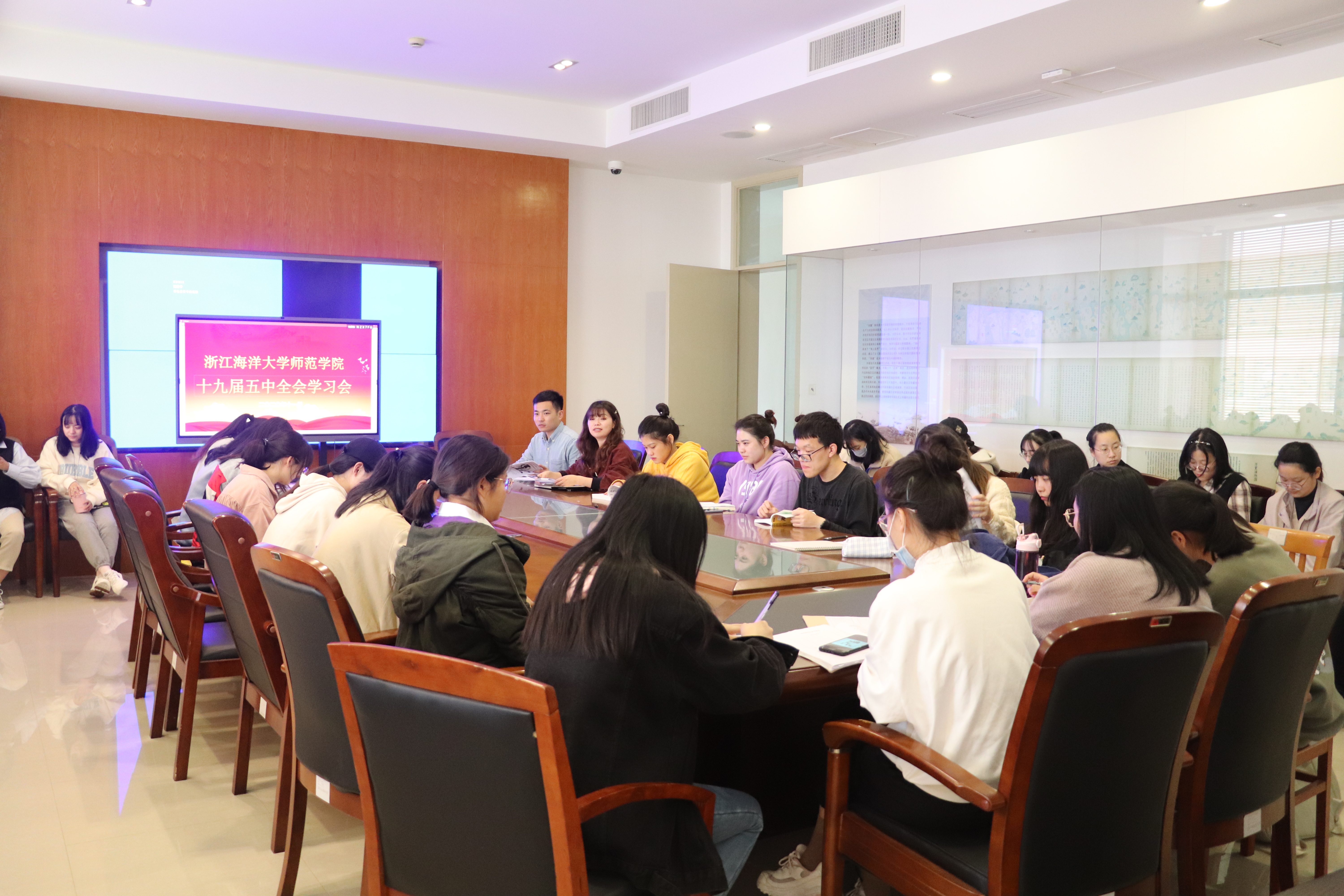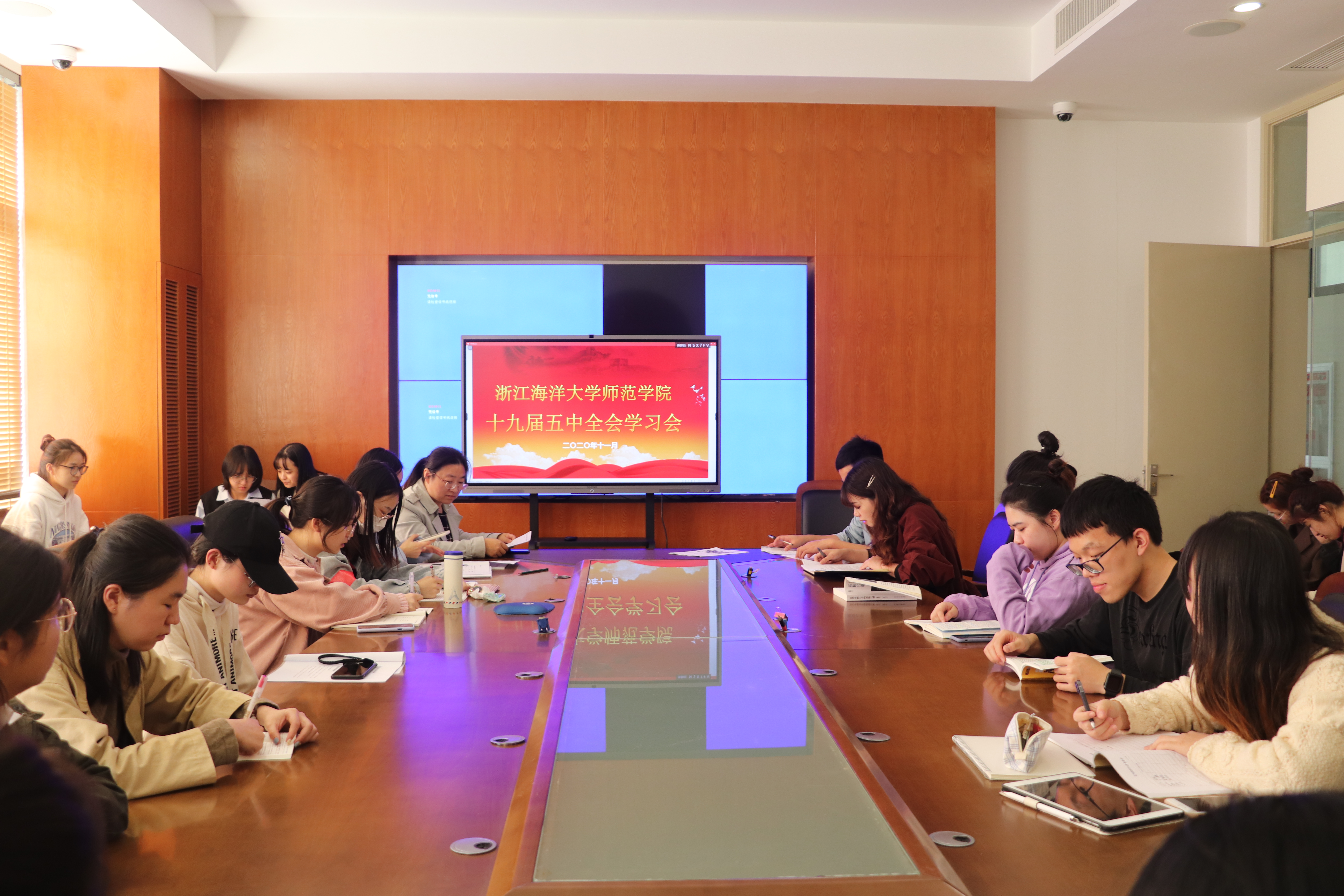 学工办主任傅林静带领大家学习党的十九届五中全会召开的时代背景、会议概况和重大意义。会议强调,教育系统要深入贯彻落实习近平总书记重要讲话精神和全会精神,深刻把握新时代教育改革发展的几个重点问题,谋好篇,开好局,着力推进构建高质量教育体系。要坚持以上率下、上下联动, 坚持学习看精神、研究看学理、贯彻看措施、落实看效果、解读看覆盖、考核看结合。要坚持统筹实施、组合推进,围绕制订“十四五”教育发展规划,在 认识上找差距、工作上找短板、措施上找弱项、落实上找问题、安全上找盲点,积极谋划建设高质量教育体系。