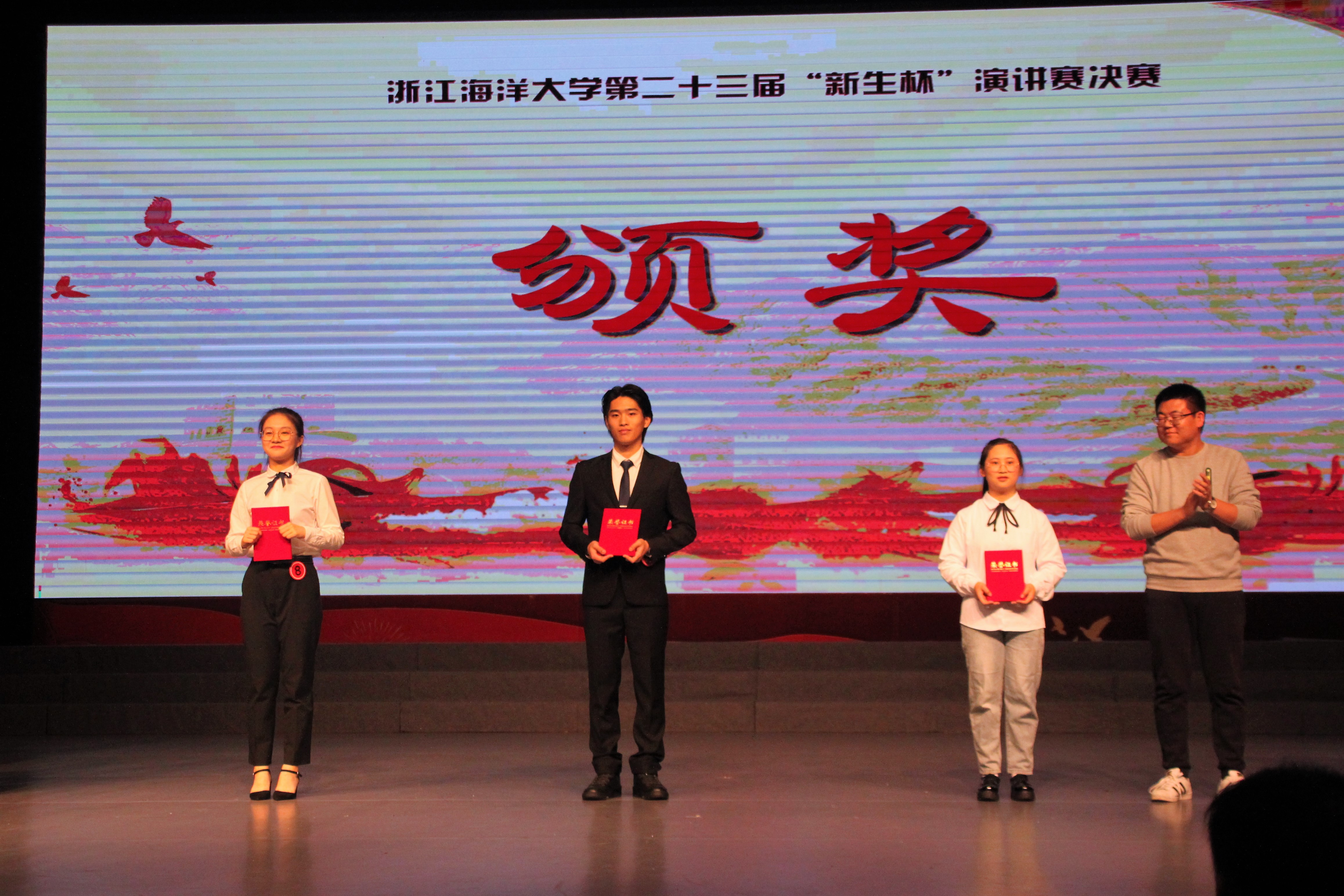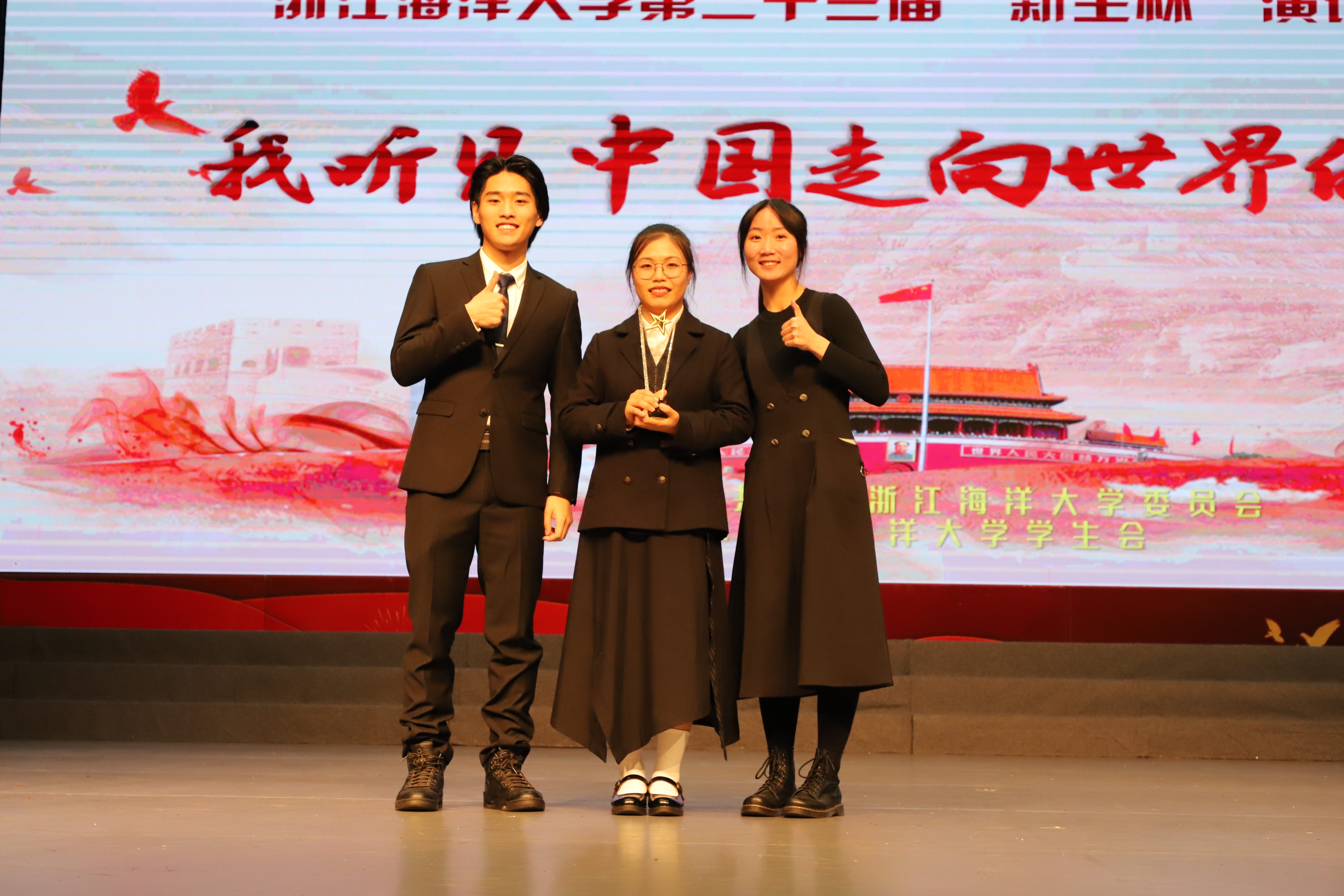 11月17日晚六点半,“我听见中国走向世界的声音”暨永利集团官网第二十三届“新生杯”演讲赛决赛在杨存国一号展厅顺利进行。本次比赛由国家级普通话水平测试员、浙江省语言学会常务理事、永利集团官网语言文字工作委员会副主任徐波教授,国家二级心理咨询师、yl9193永利集团心理学副教授汪晓阳老师,永利集团官网东海科学技术学院团委副书记孙昕皓老师担任评委。yl9193永利集团戴益萍、黄愉翔、吴文斌、高舒涵四位同学代表学院参赛。