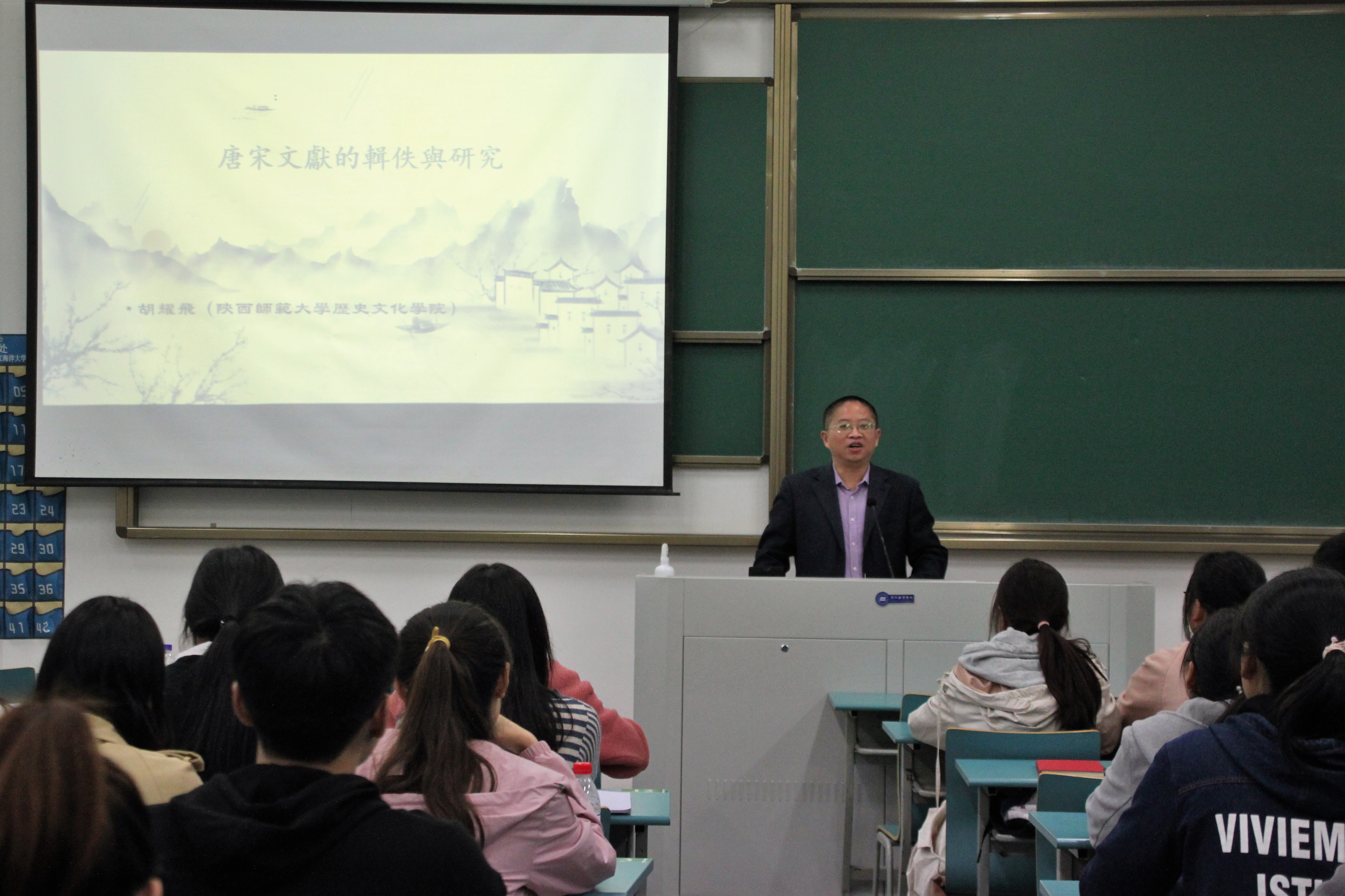 11月12日晚,永利集团官网观澜大讲坛第一讲在公共教学楼430如期进行。应yl9193永利集团的邀请,陕西师范大学历史文化学院副教授、中国唐史学会理事、中国民主同盟盟员胡耀飞教授莅临我校做“唐宋文献的辑佚与研究”的专题讲座。yl9193永利集团党委书记、副院长杨宁,B19历史系班主任李胜老师,历史系陈金龙老师,李金阳老师及众多师院学生参与讲座,历史系主任楼正豪老师担任主持人。