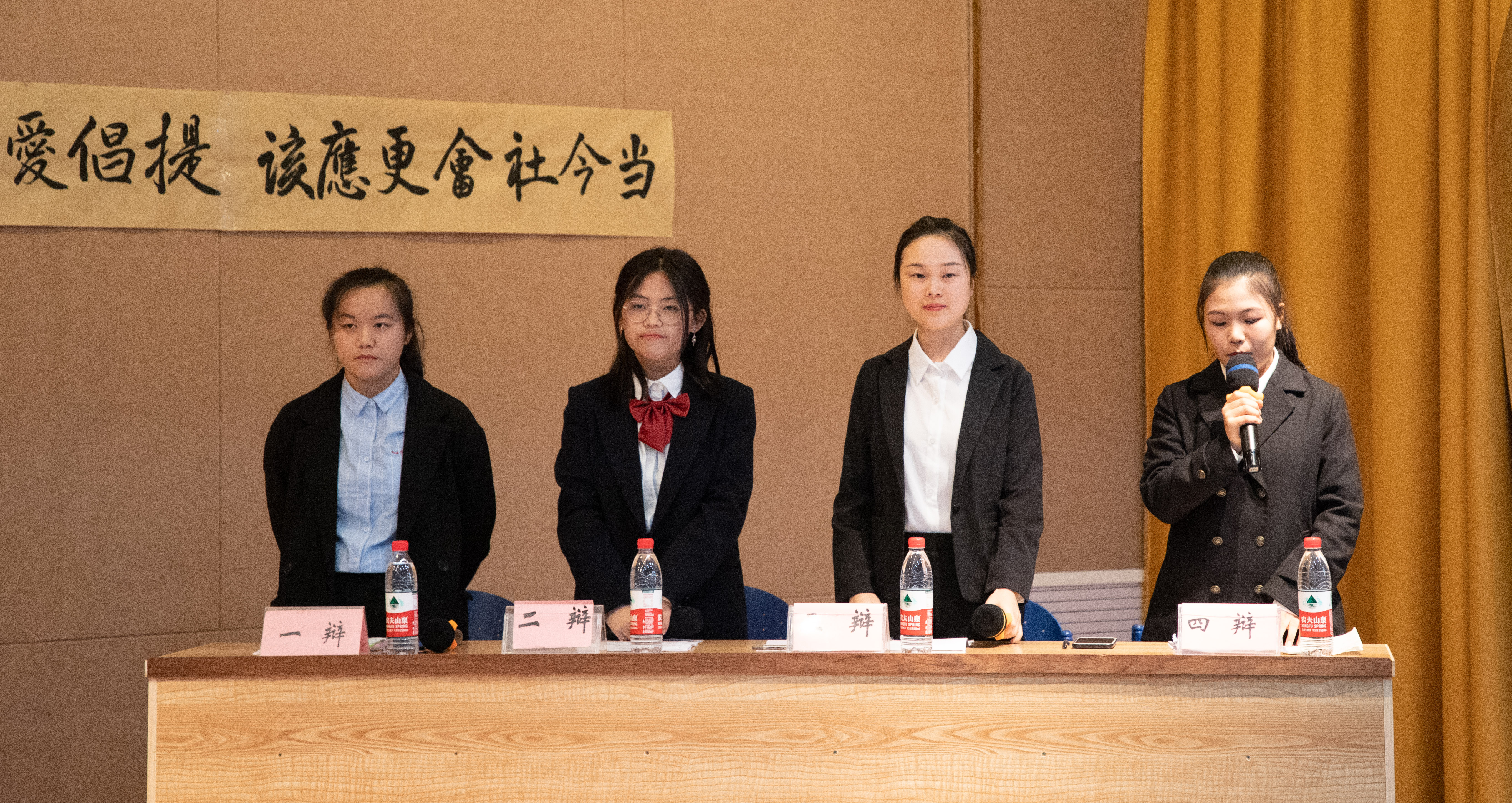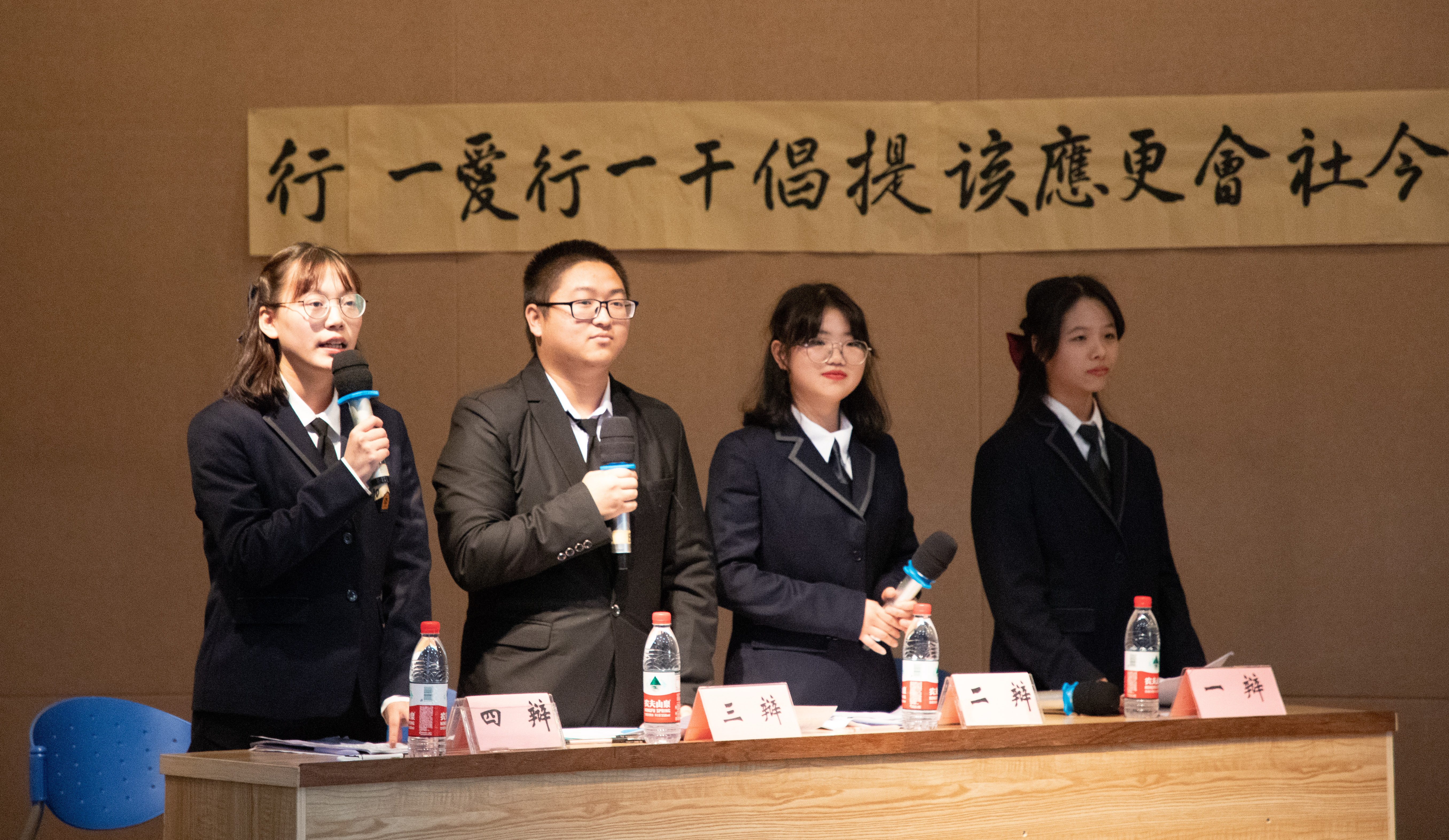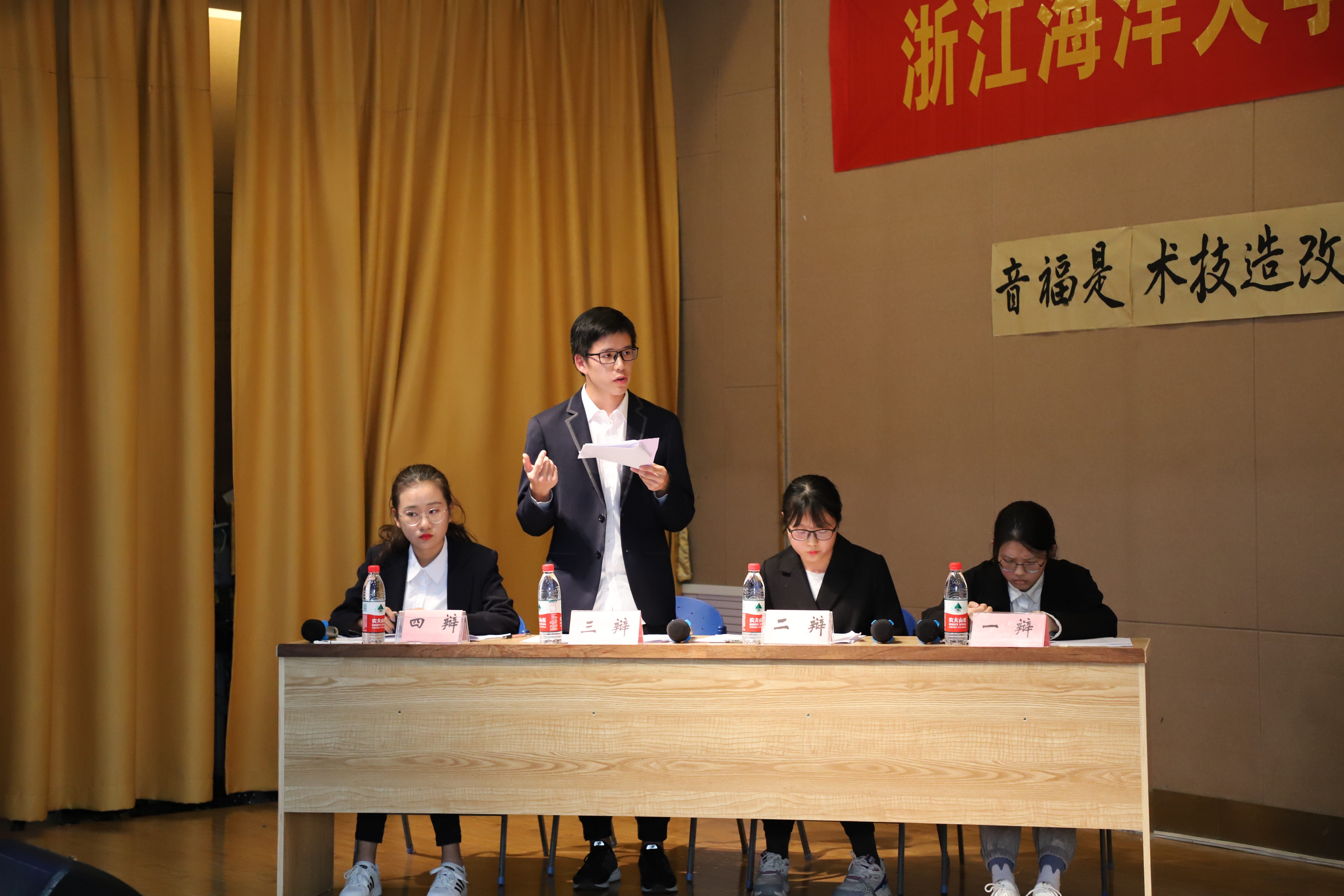 通过预赛和晋级赛的选拔,共有四支晋级队伍参加本次决赛。B20小教2一队与B20中文1一队就“基因改造是福音还是噩梦”展开辩论,双方以事实数据为支撑,从道德伦理与科学技术两方面进行破题立论,精彩的对辩将场上气氛推向高潮。B20历史千钧队与B20小教2二队围绕“当今社会更应该提倡干一行爱一行还是爱一行干一行”这一辩题,从事实和价值层面进行论证,引出“因爱而长还是因长而爱”的交锋点,发人深省。评委和观众则通过质询环节向正反双方提出质疑,场上气氛更加热烈,辩论脉络更加清晰。