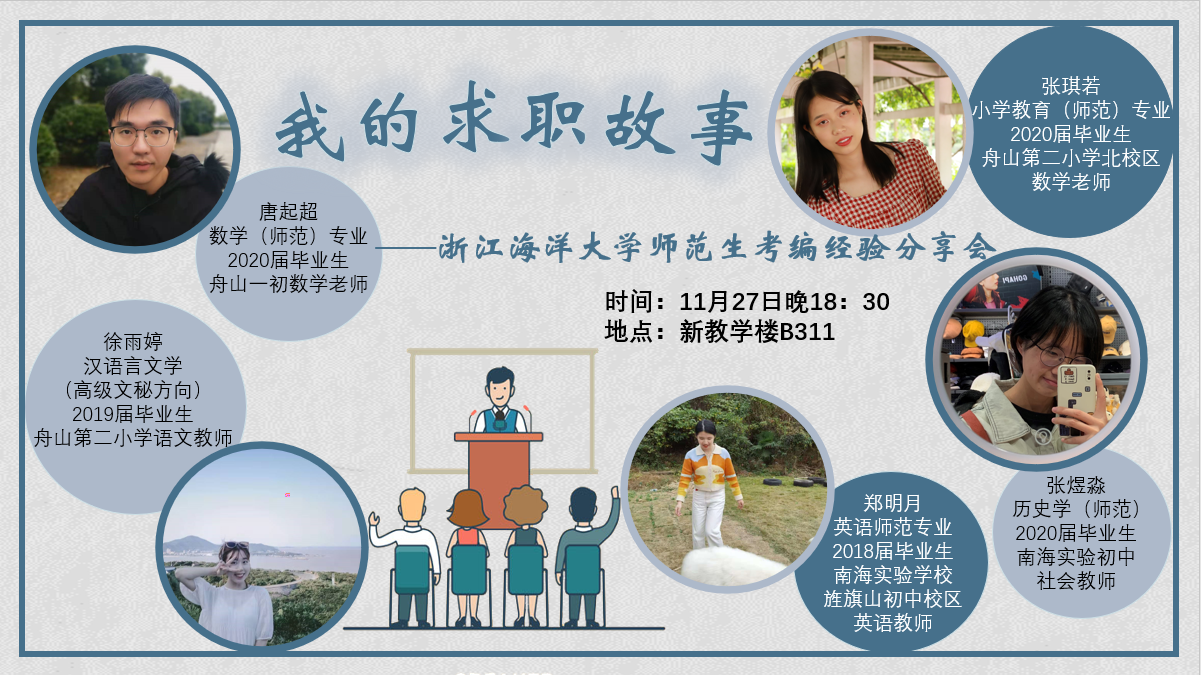 11月27日晚上六点半,永利集团官网师范生考编经验分享会于新教学楼B311顺利举行。本次分享会由yl9193永利集团学工办主任傅林静主持,2019届汉语言文学(高级文秘方向)毕业生徐雨婷,2020届小学教育(师范)专业毕业生张琪若、历史学(师范)专业毕业生张煜淼、数学(师范)专业毕业生唐启超,2018届英语(师范)专业毕业生郑明月分别作了经验交流分享。