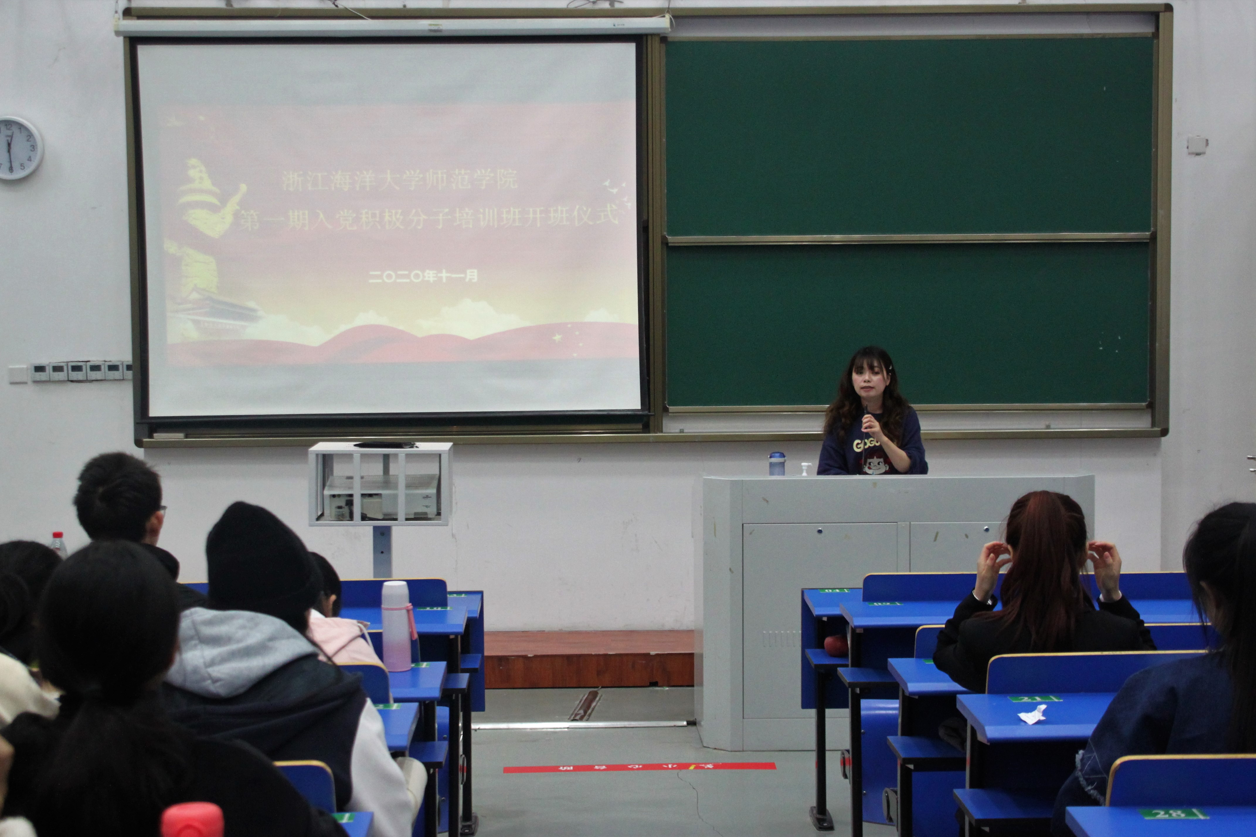 11月27日中午十二点三十分,yl9193永利集团第一期党训班开班仪式于公共教学楼117顺利举行。本次活动由学工办主任傅林静主持,yl9193永利集团党委书记、副院长杨宁,党委副书记、纪委书记曹虹,辅导员刘超瑜受邀出席。共有yl9193永利集团124名入党积极分子参加。