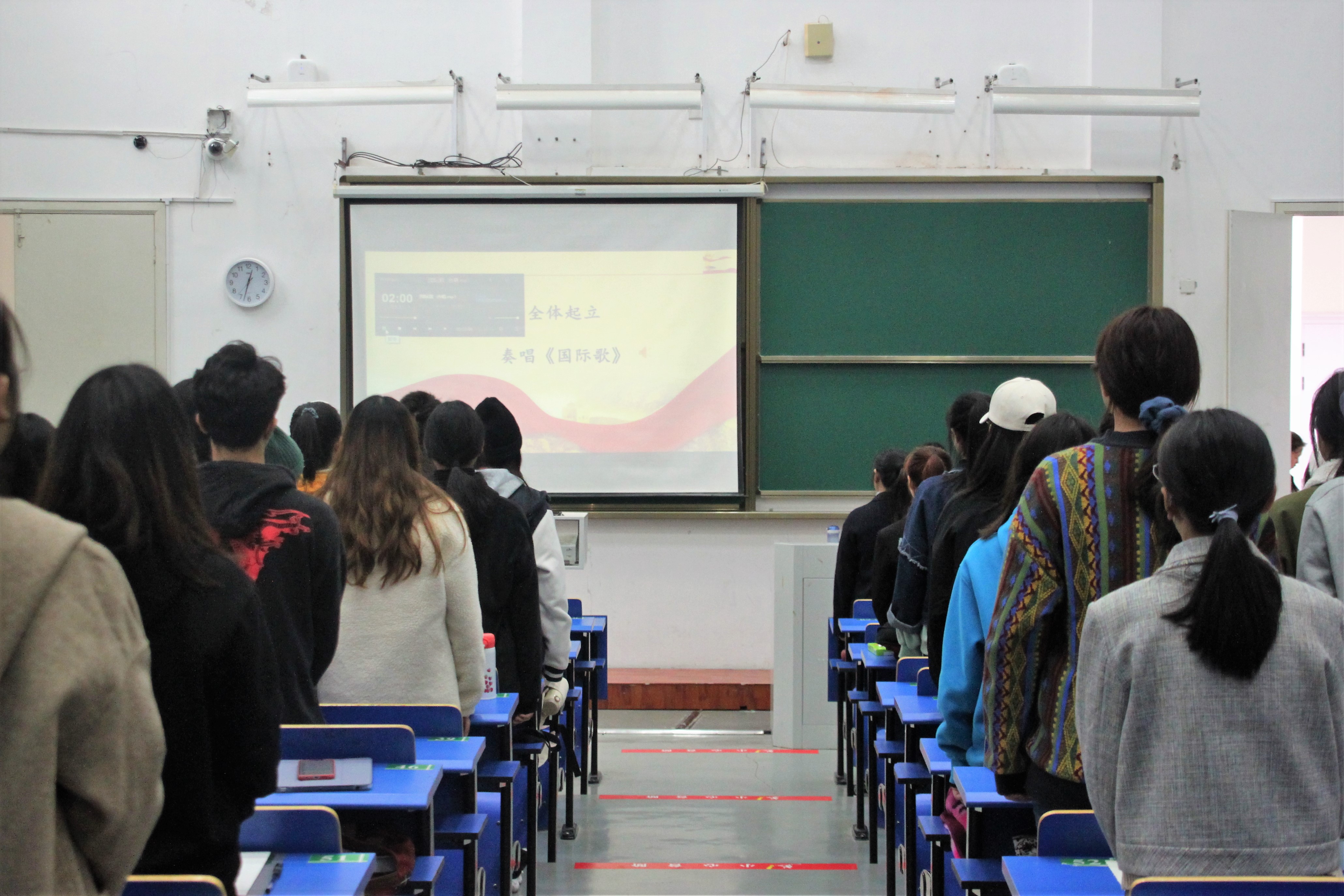 在庄严而嘹亮的《国际歌》中,开班仪式拉开序幕。伊始,傅林静老师向大家简单介绍了本次党训班的课程安排以及注意事项,同时提出纪律要求,希望大家能以党员的标准严格要求自己,积极参加本期党训班。随后,党员代表B18中文2班骆简之进行发言,她表示大学生党员是大学生队伍中的先进分子,是具有影响力的优秀群体,党训班是提升入党积极分子思想的重要平台之一。因此,她希望大家能够重视并珍惜这次学习的机会。紧接着,学员代表B18小教1班潘永滨表示,将以饱满的热情全面投入到本次学习中去,将思想追求与实际行动有机结合,在行动上严格要求自己,在思想上向我党的最高目标看齐。之后,曹虹副书记发表讲话。她提到,作为党员发展历程中的新鲜血液,党训班各学员应树立正确的入党动机。曹副书记希望大家在接下来的学习中能够做到以下四点:一是严守党的纪律;二是坚定意识形态;三是不断学习党规、党章,学习习近平总书记的重要讲话以及近期时事政治的精神等;四是加强党性修养,保持党的先进性。最后,杨宁书记进行总结发言,首先肯定了党训班的作用,希望各学员通过基础而全面的学习,不仅能在理论知识方面对我党有初步认识,而且能为思想上的提升打下基础。他期望能与老师们共同见证在座学员新的提高。本次开班仪式在《中华人民共和国国歌》的齐唱声中落下帷幕。