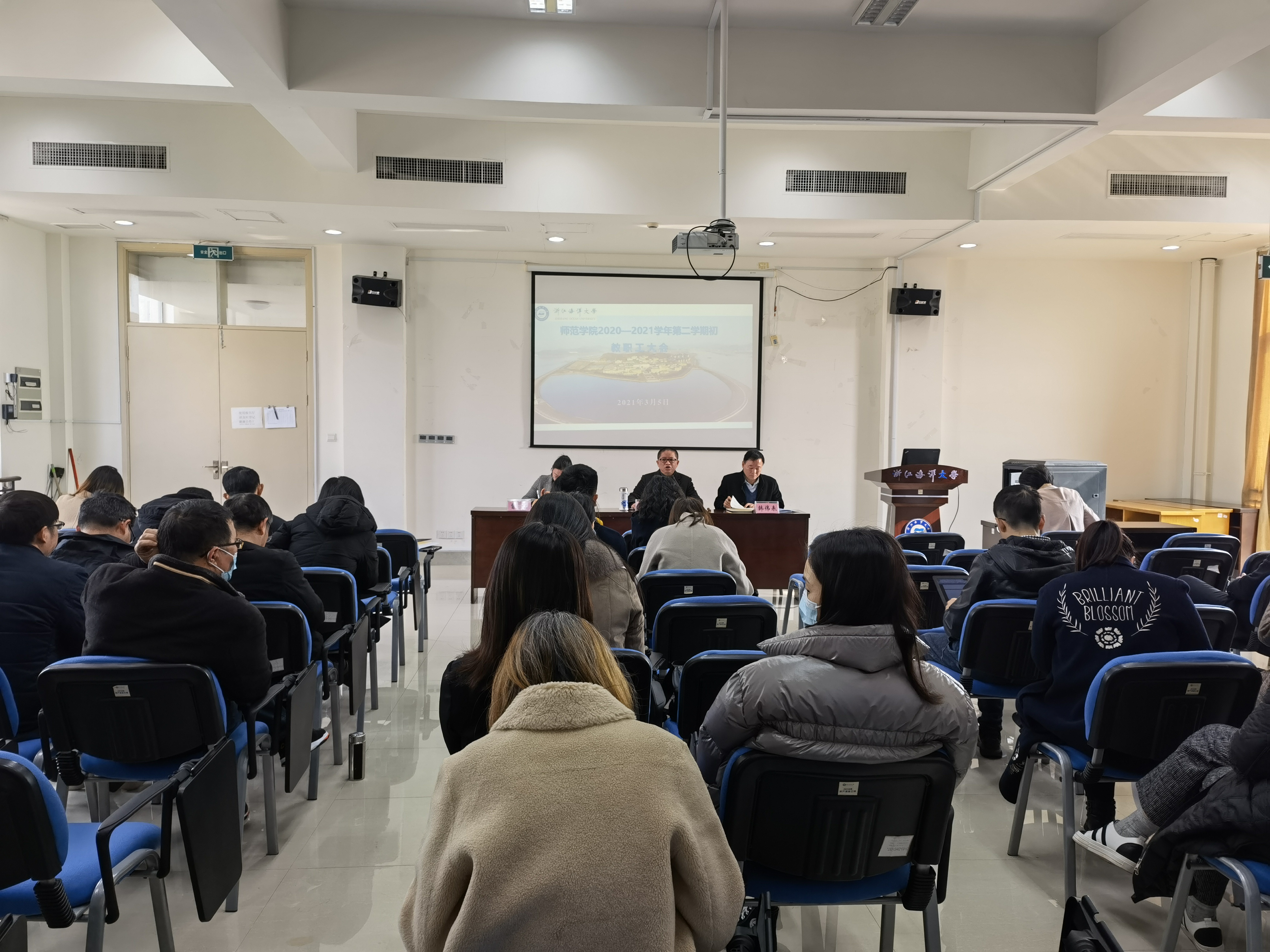 3月5日上午,yl9193永利集团在文理楼301报告厅召开2020—2021学年第二学期初教职工大会,部署安排新学期工作。yl9193永利集团党委书记、副院长杨宁,党委副书记、院长韩伟表,党委副书记、纪委书记曹虹,党政班子成员,全体教职工参加会议。会议由曹虹副书记主持。