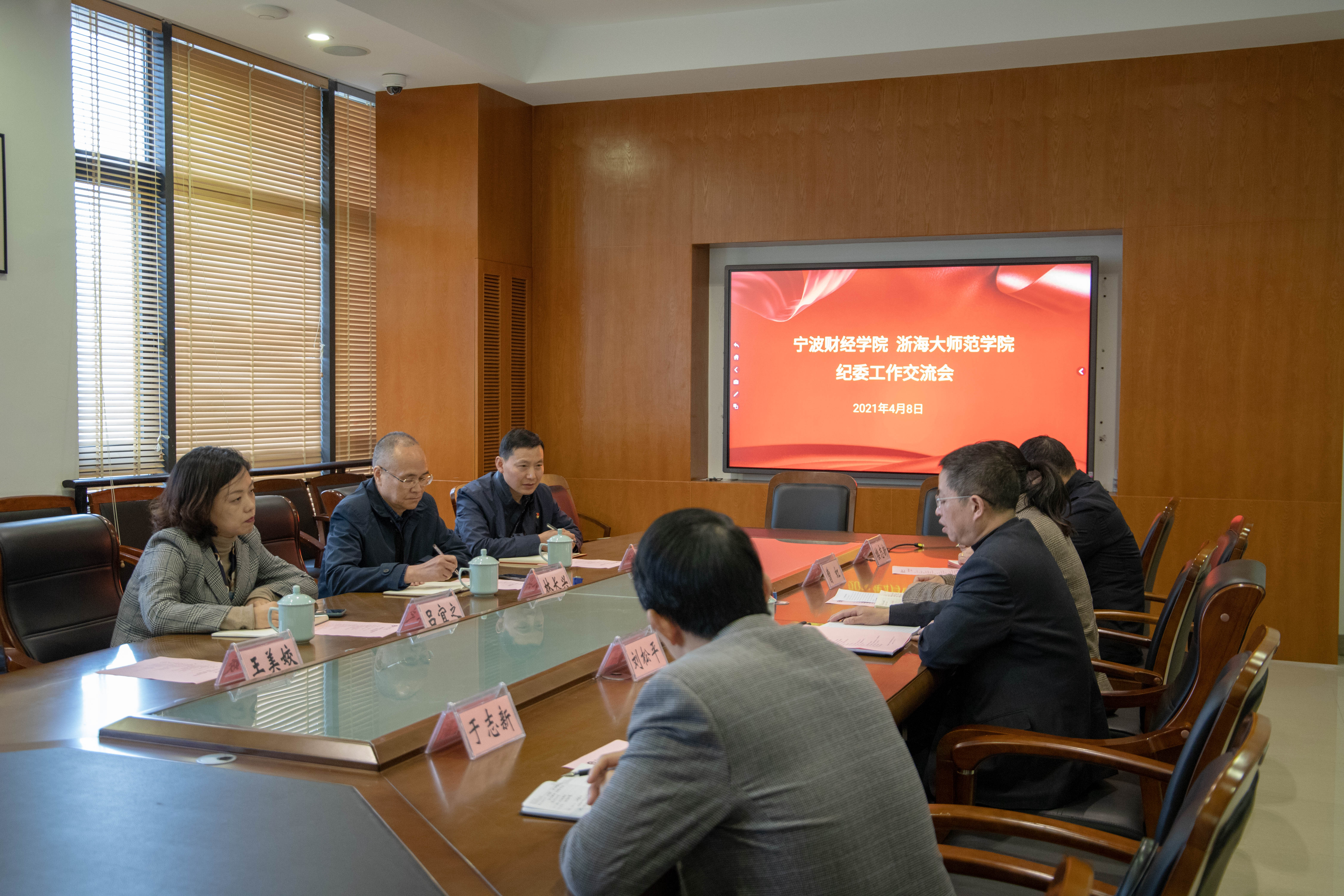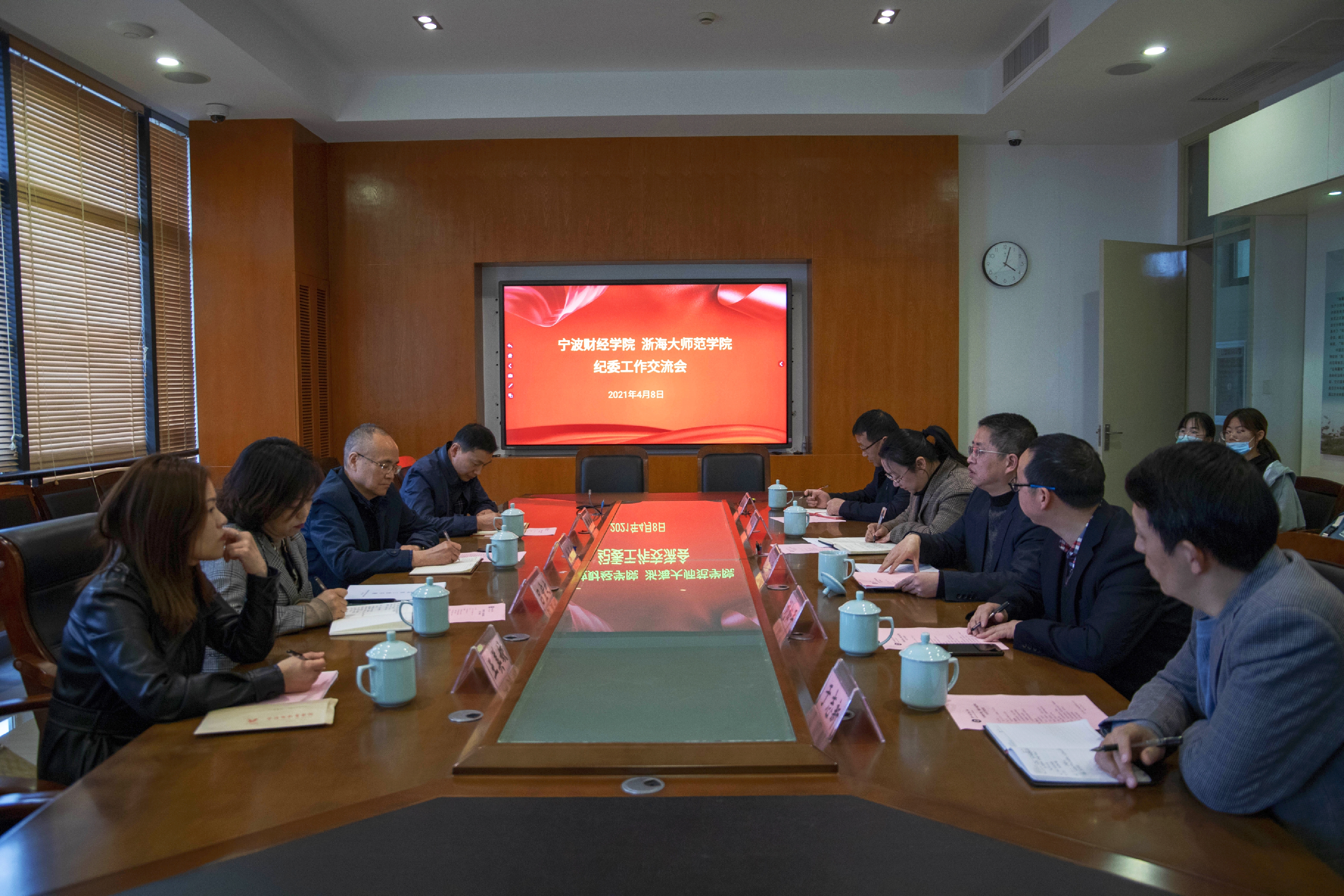 2021年4月8日下午,宁波财经学院纪委林长兴、吕宜之、熊红斌、王美蛟一行4人来到长峙校区文理楼,与永利集团官网yl9193永利集团党委纪委交流工作。yl9193永利集团党委书记杨宁,党委副书记、纪委书记曹虹,纪委委员楼志新、于志新参加工作交流会,学校党委巡察办公室、纪检监察室副主任刘松平陪同交流。